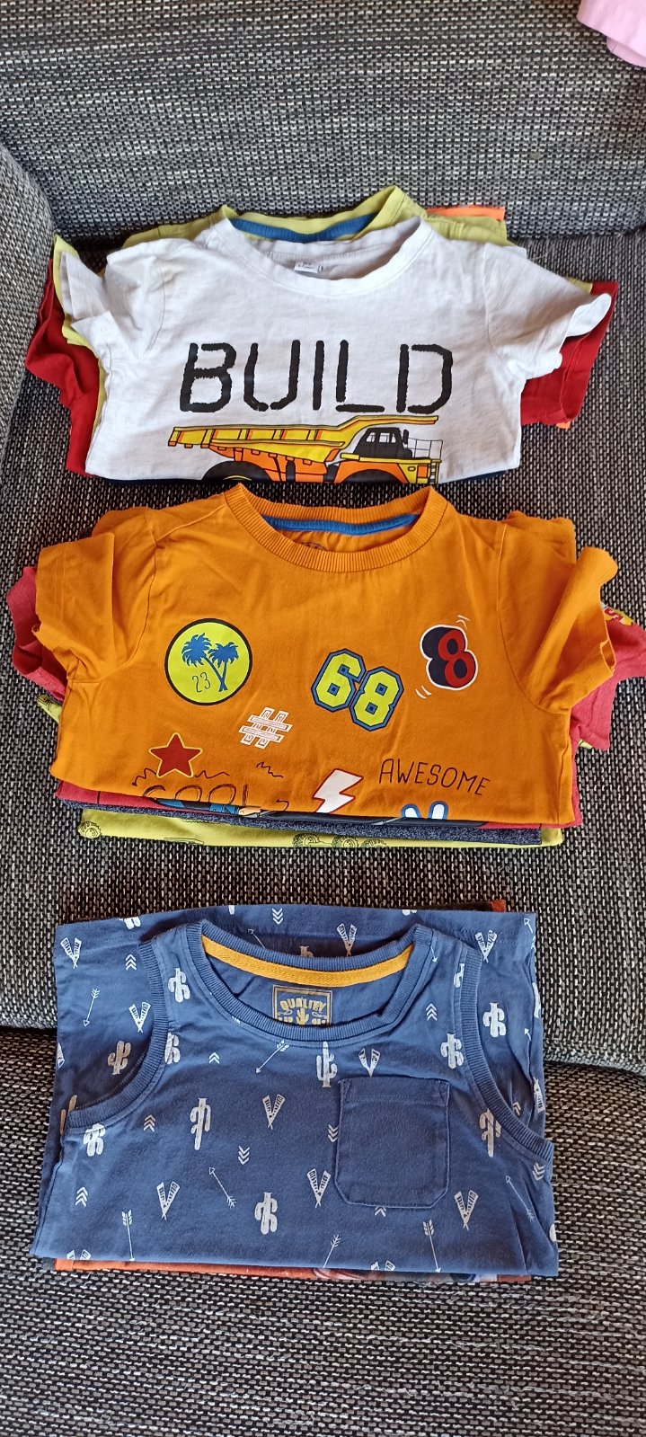 Balík 7 x tričko krátky rukáv, 2x tielko a 2x tričko grátis ( malý fliacik, viď posledné tri foto). Mix značiek ( Dopodopo, F&F a iné). Tričká a tielka sú bez poškodení.