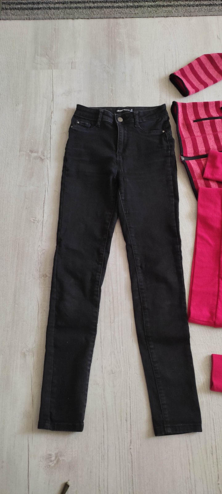 Pyžamko je úplne nové, nenosené, len vyskúšané ( netrafili sme veľkosť), rifle nosené ale úplne v perfektnom stave. Spolu 10€