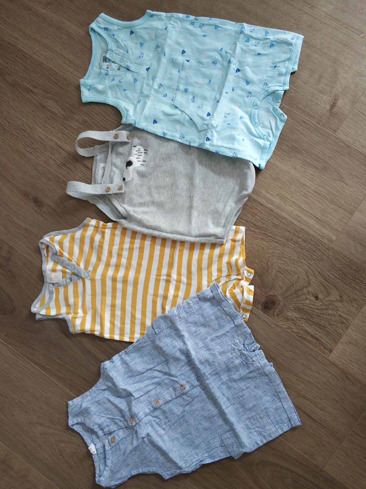 Balík letného oblečenia vo veľkostiach 62-68. 9x body krátky rukáv 1x krátke nohavice na traky 2x "overal" krátky 2x tričko krátky rukáv 3x tenučké nohavice 1x súprava body, kraťasy a čiapočka ...