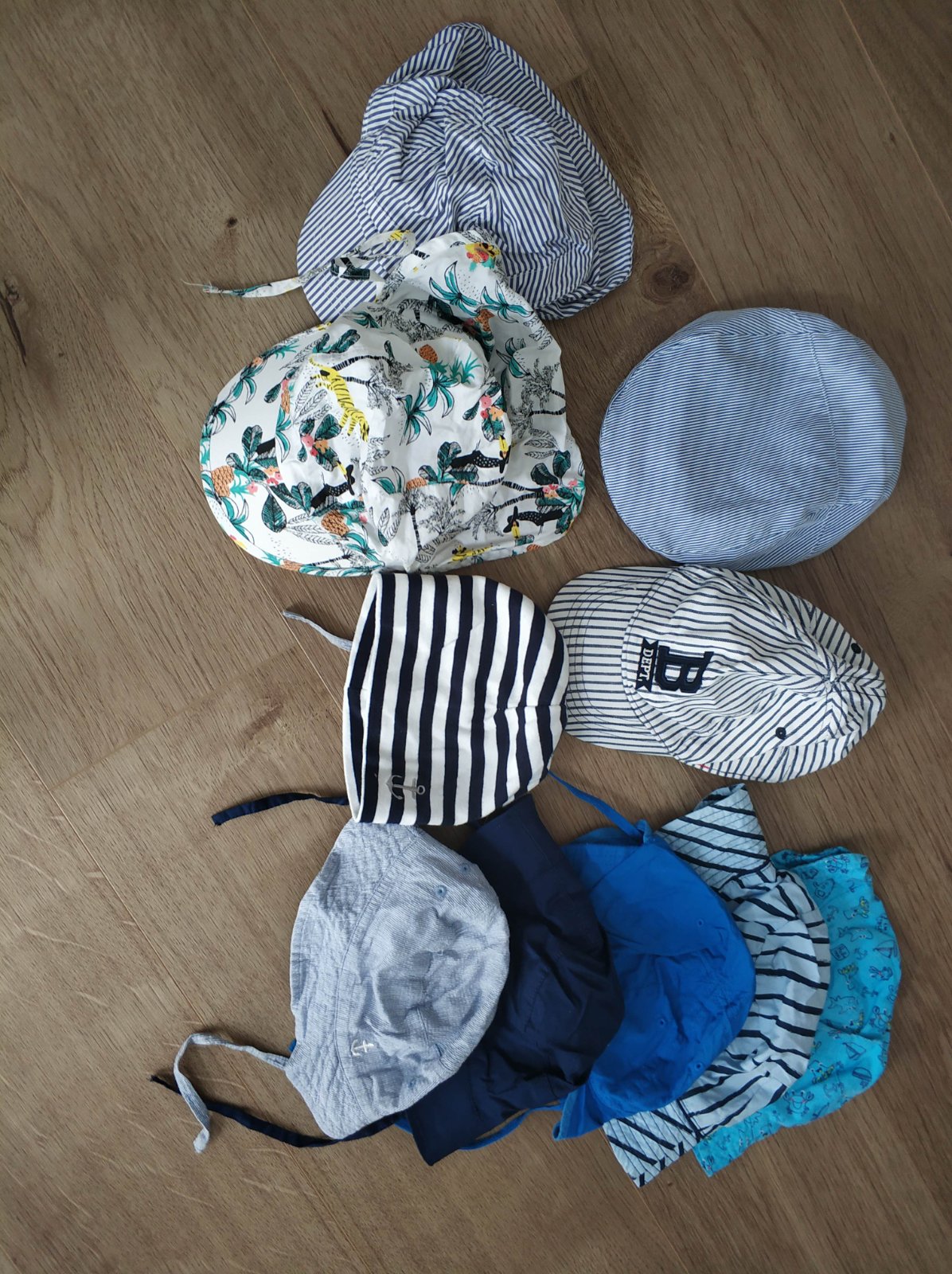 Všetko veľmi pekný stav, značka F&F,v. 6 - 9mesiacov. Obsahuje overaly, klobúčiky a jednu súpravu body s rifľovými kraťaskami.