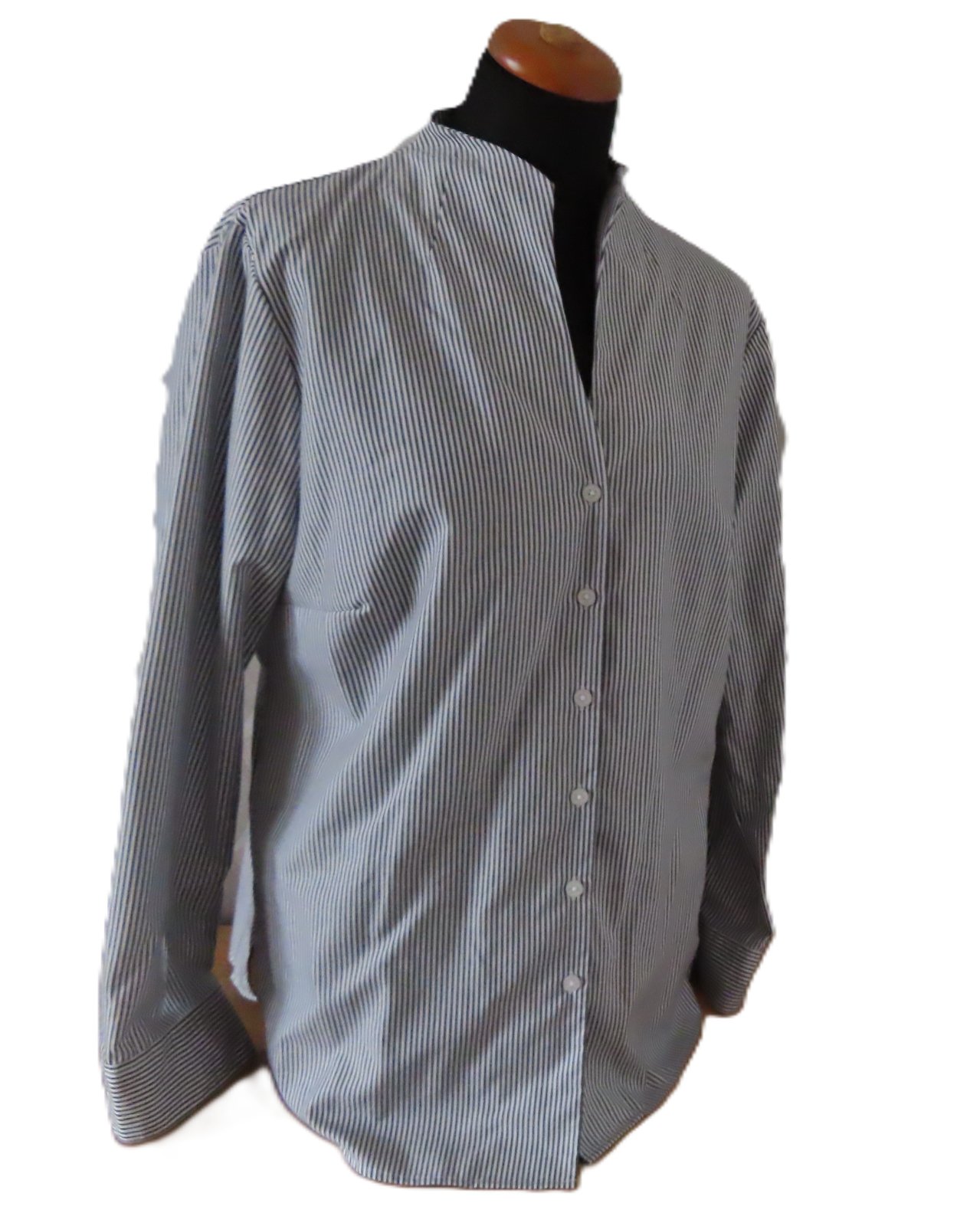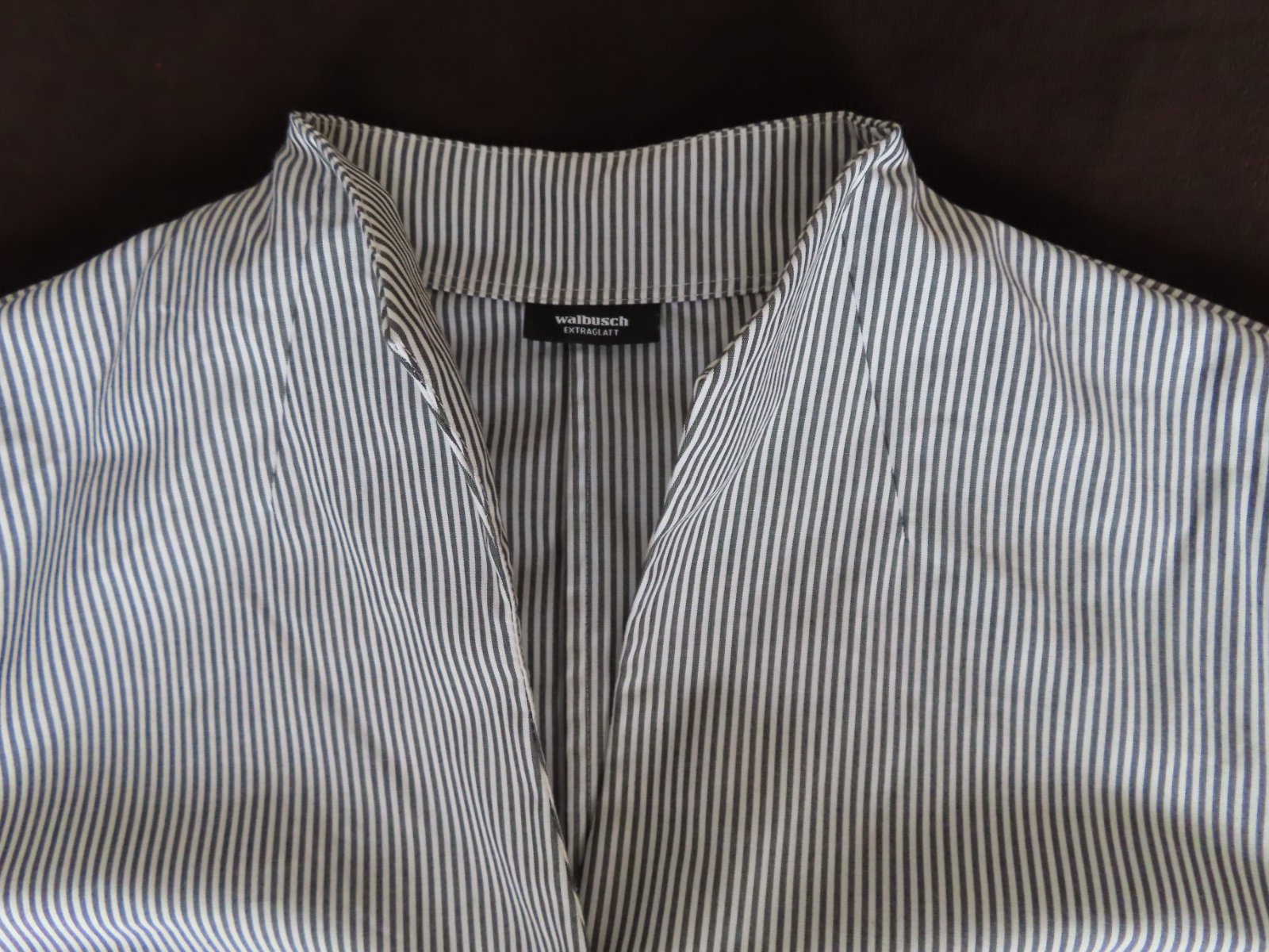1/ Dámska blúzka Walbusch veľ.44/XL - rozmery: dĺžka 70cm, pod pazuchami 2x57cm, rukáv 60/46cm. Jemný šedo-hnedý prúžok.