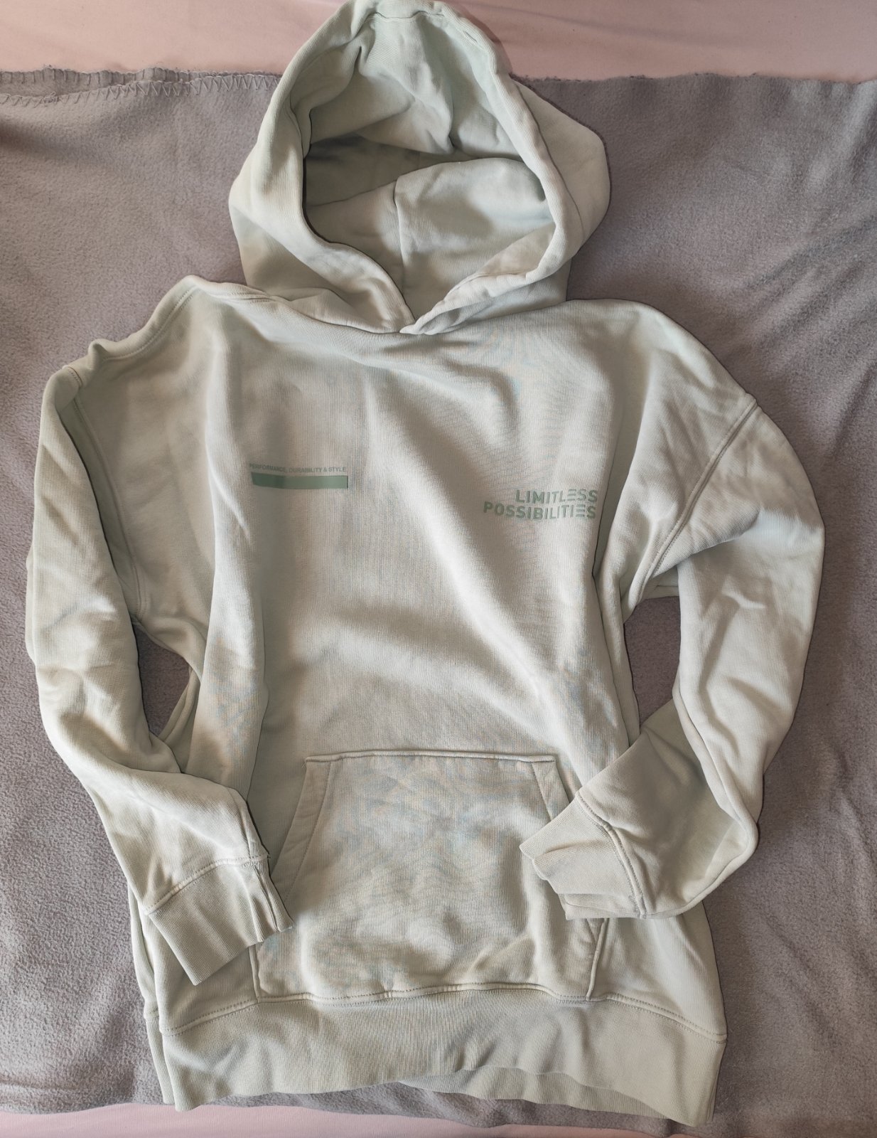 1x mentolová mikina č.164 oblečená asi 2x