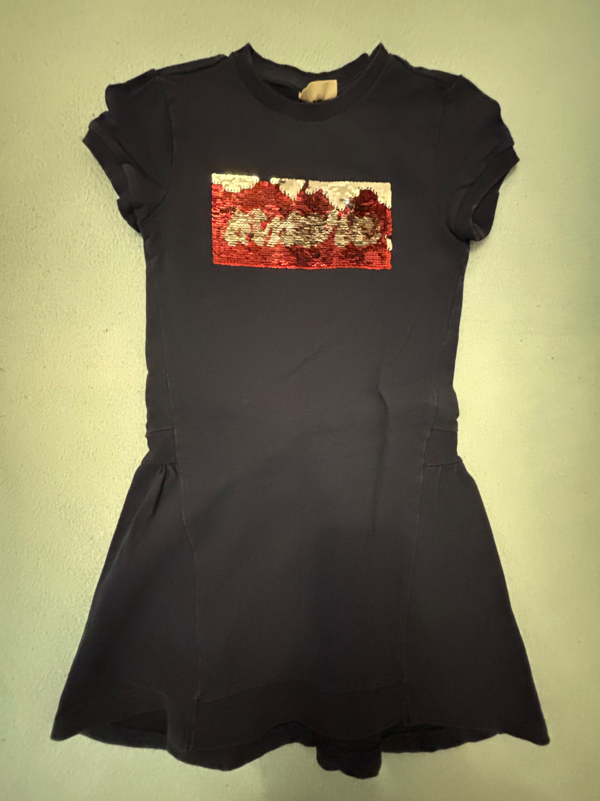 Lesklé legíny nové, mikina nová suknička nová tričko Zara na rukáve malé fliacky viď foto čelenky k tomu a mikina 122/128