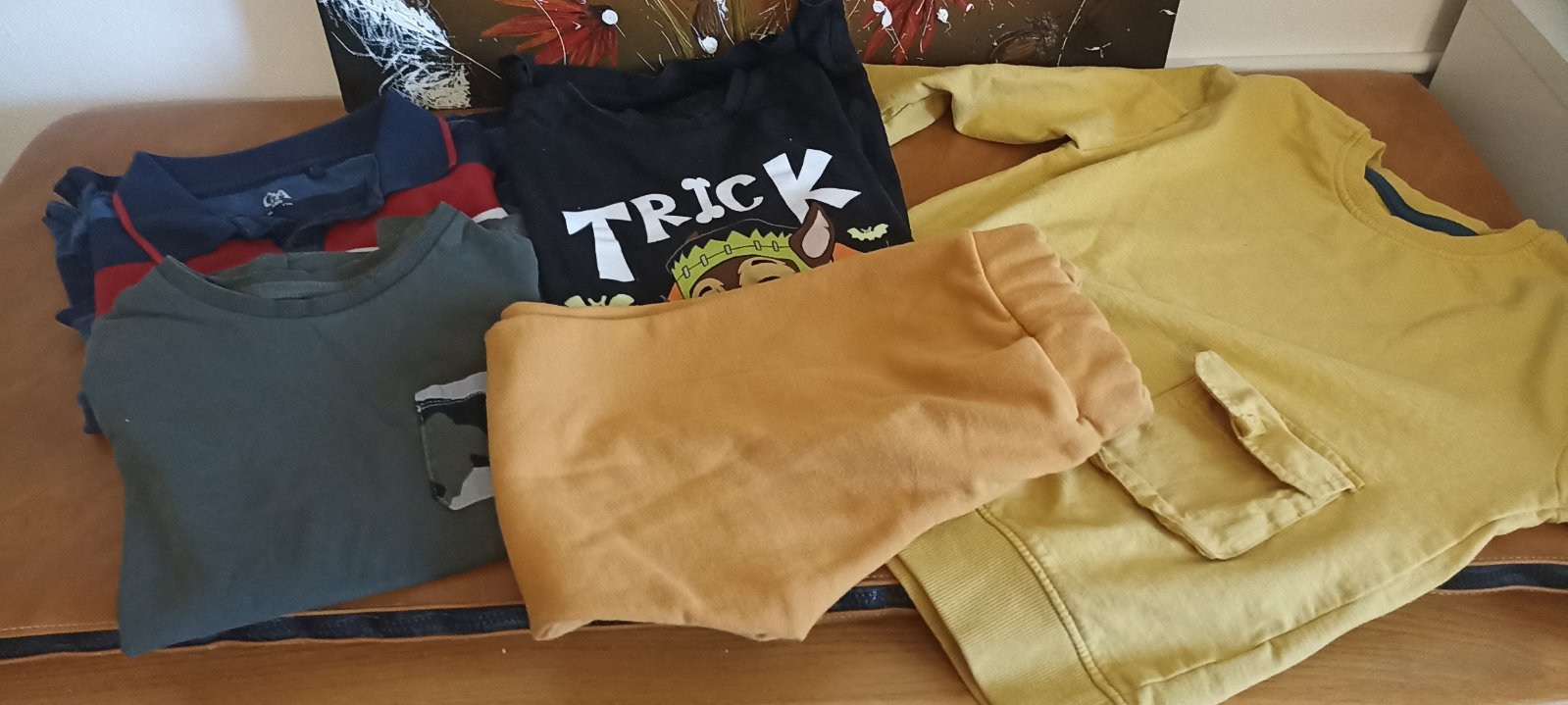 Balík obsahuje tricka s dlhým rukávom , mikinu a handmade tepláky. Mikina minimálne nosena, tričká bez poškodení. Značky C&A, Next, Sinsay.