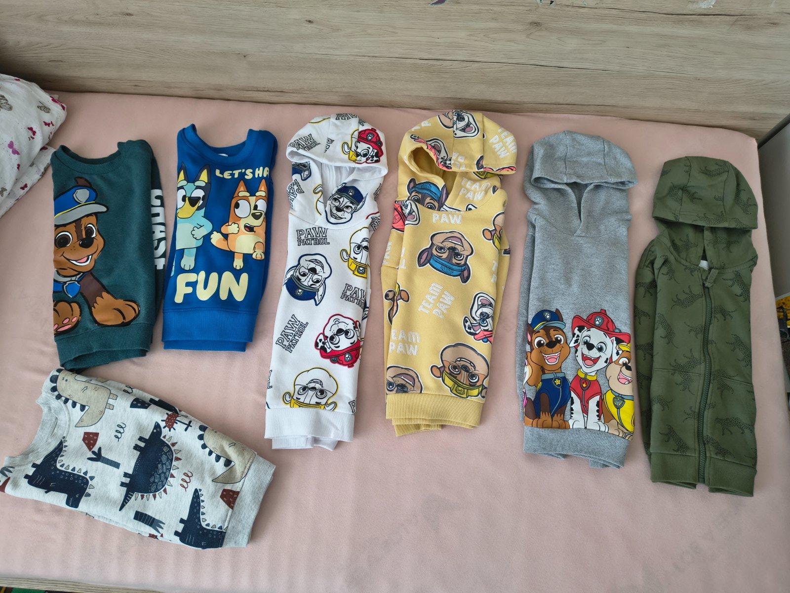 Krásne nove mikinky bez poškodení. Veľkosť 110. Syn ich mal iba 1x oblečene, prednosť daval mikinam so zipsom.