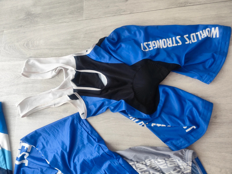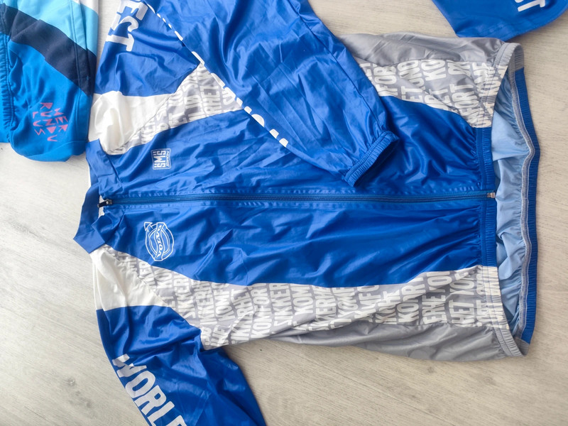 Nohavice na traky a bunda nové, modré tričko s krátkym rukávom oblečené 1x, sivé kraťasy pár krát bez známok nosenia. Sedí na L/XL