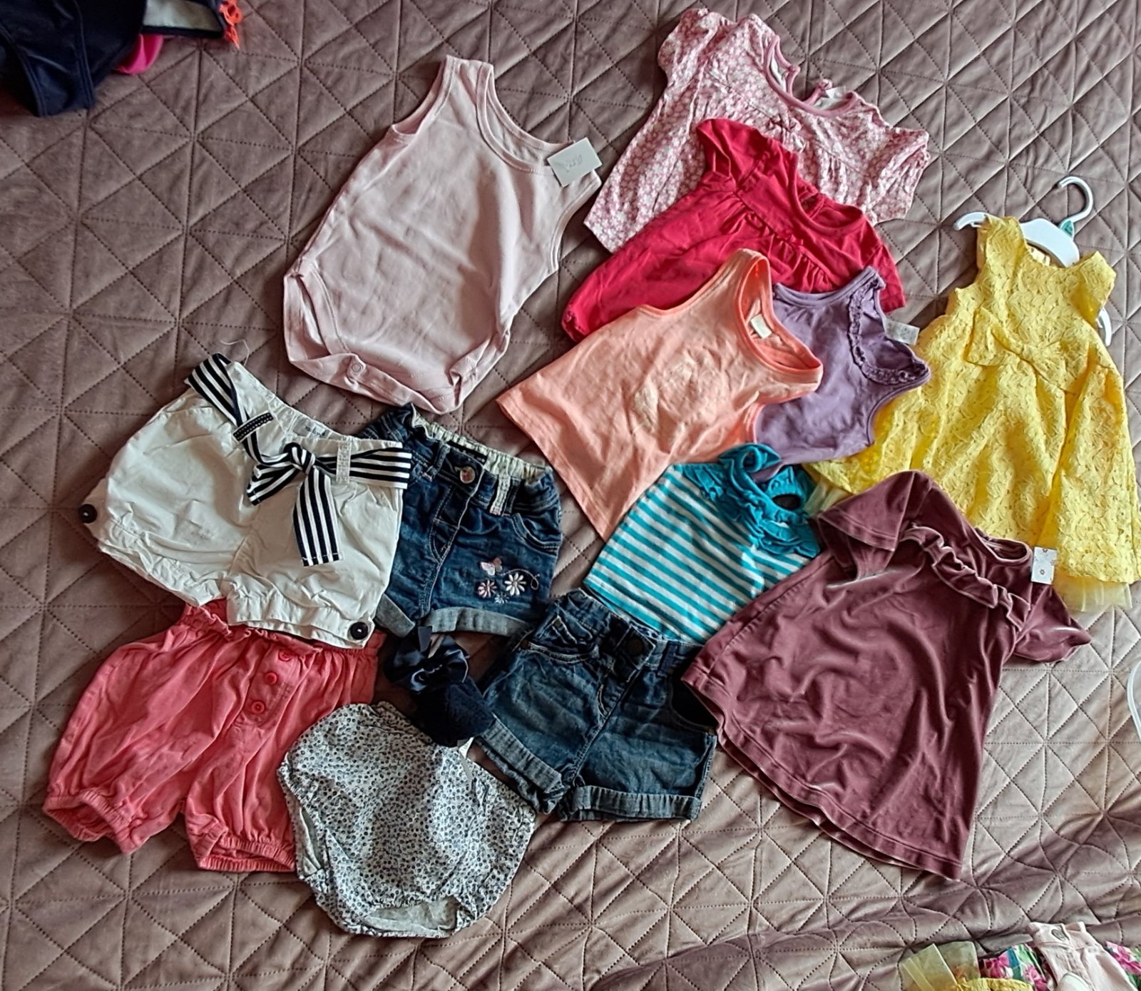Pekne vecicky bez poskodenia fliacikov dierok, sú tam aj veci ako nove a nove.napr žleté šaty.