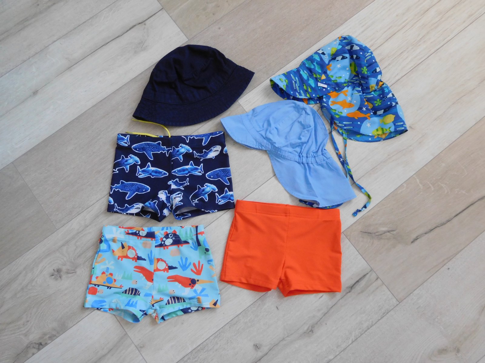 Ponkam na predaj plavky +klobúčiky+kruh do vody, okrem obuvi na foto všetko, plavky sú nepoškodené, čisté,makké, voňavé.