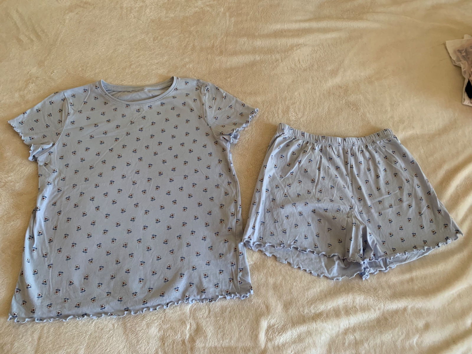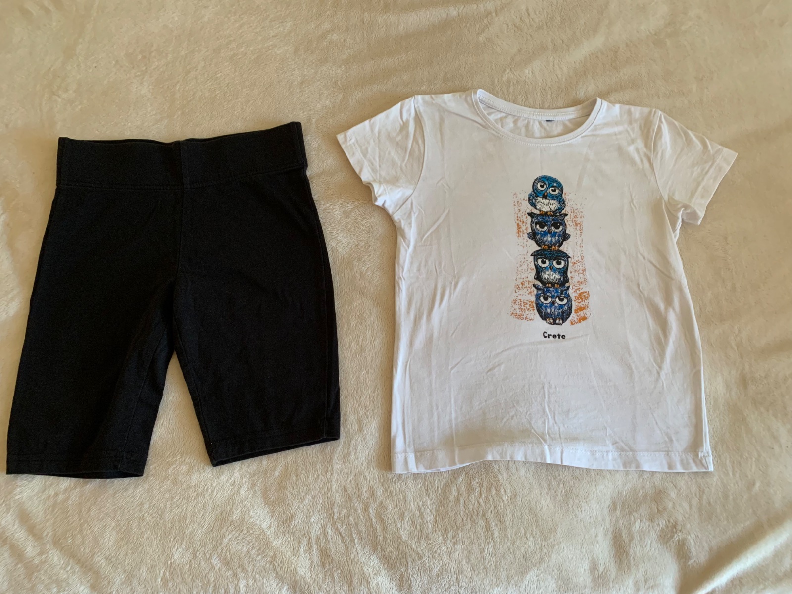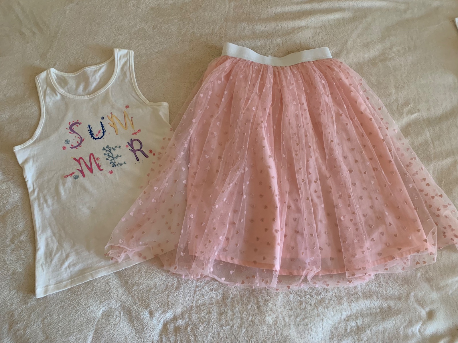 1letné pyžamo, 3 trička, 1 tielko, 1 sukňa, 1 krátke leginy.