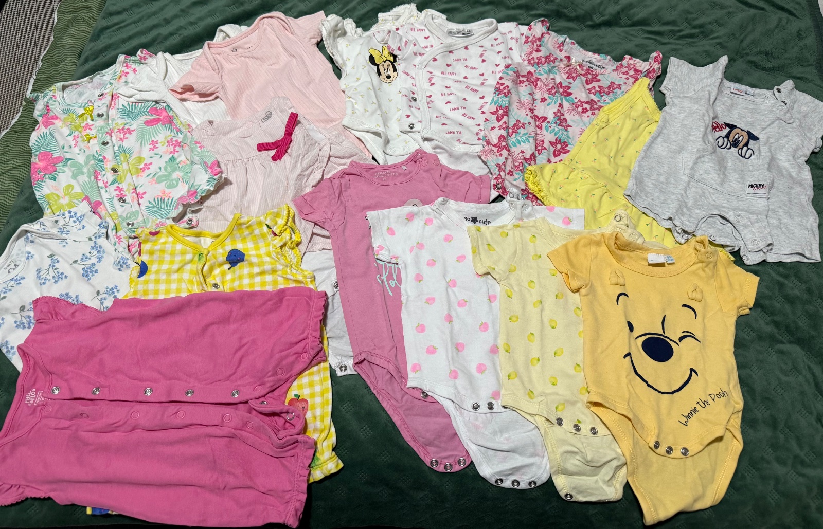 Velmi dobry stav veci. 2x hrubsi overal, dzupacky, saticky, tricka, 6x body kratky rukav, kvietkovy kratky overal.