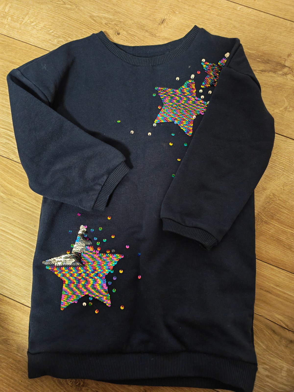 Veľkosť 104, aj tak sedia. Krásne šaty s čipkou - Name IT v top stave, sukňa Palomino top stav, svetrík frajerský top stav - H&M, modré šatičky nosené viac, ale veľmi pohodlné a kvalitné.
