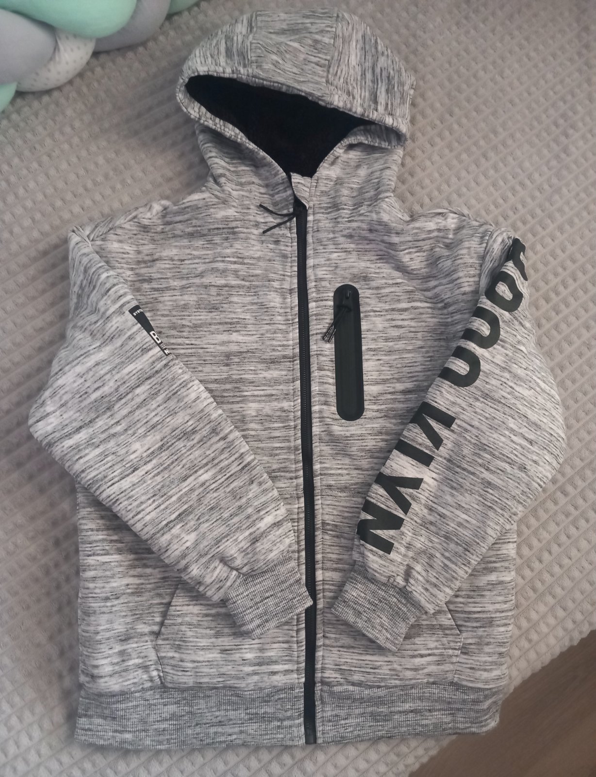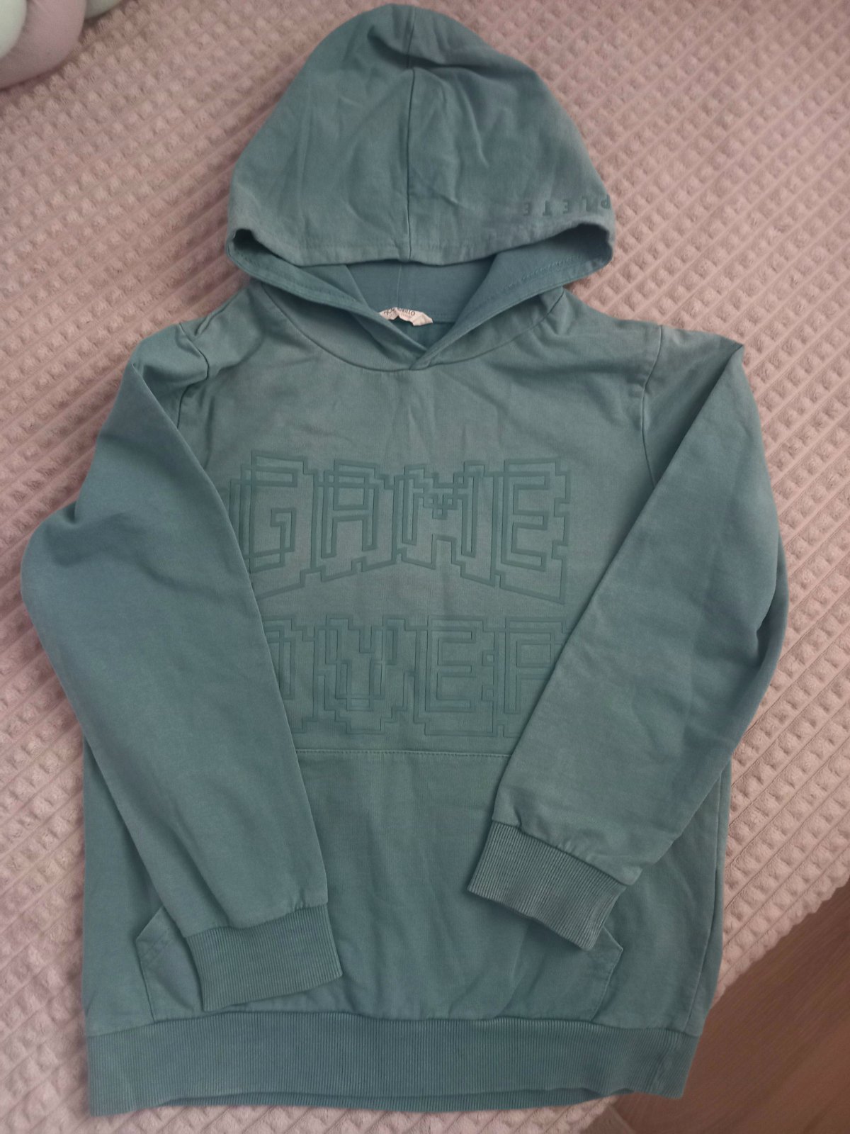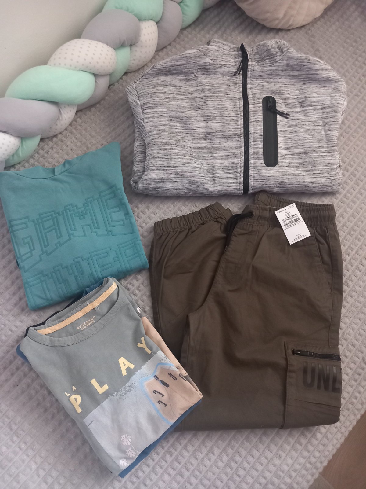 Nenosené nohavice next ešte s vysačkou, neodhadla som veľkosť, hrubá mikina top stav, 2x tenšia mikina, tričká dlhý a krátky rukáv.