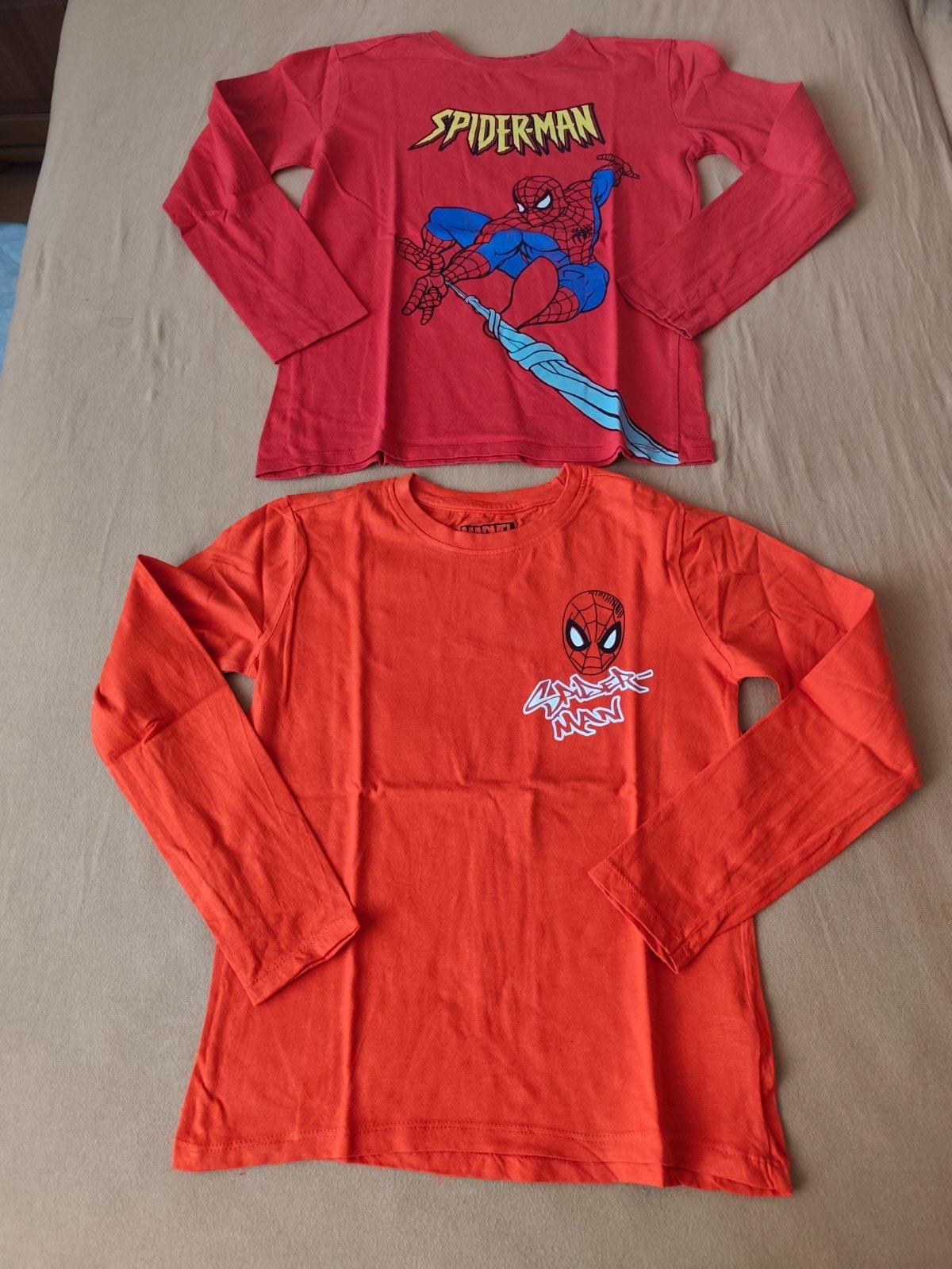 8x tričko s dlhým rukávom v. 140, zn. Sinsay (červené Spiderman s obrázkom na chrbte, biele Spiderman, šedé s autom a bledo modré s bágrom neboli nosené, len oprané)