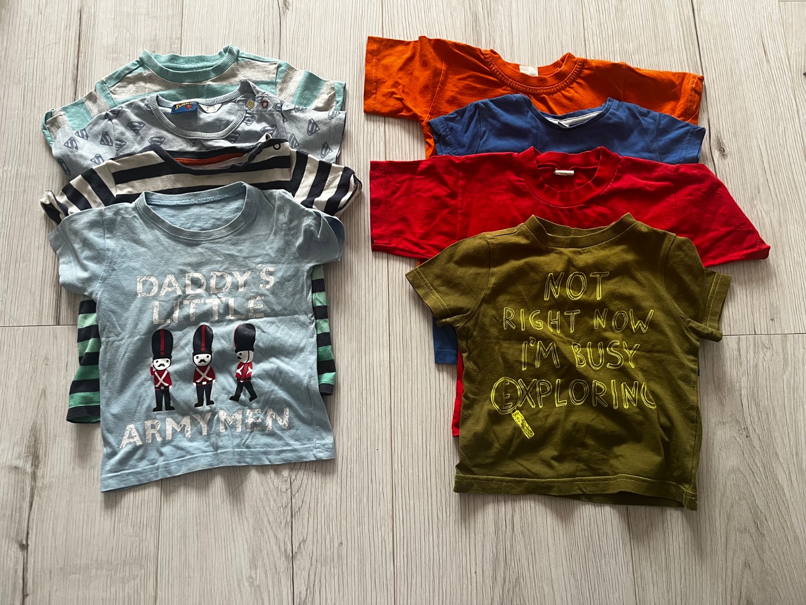 Predám 8 kusov chlapčenských kratkorukavovych tričiek v stave na donosenie (sem-tam fliacik, dierka), rôzne značky, veľkosť: 92 a 98.