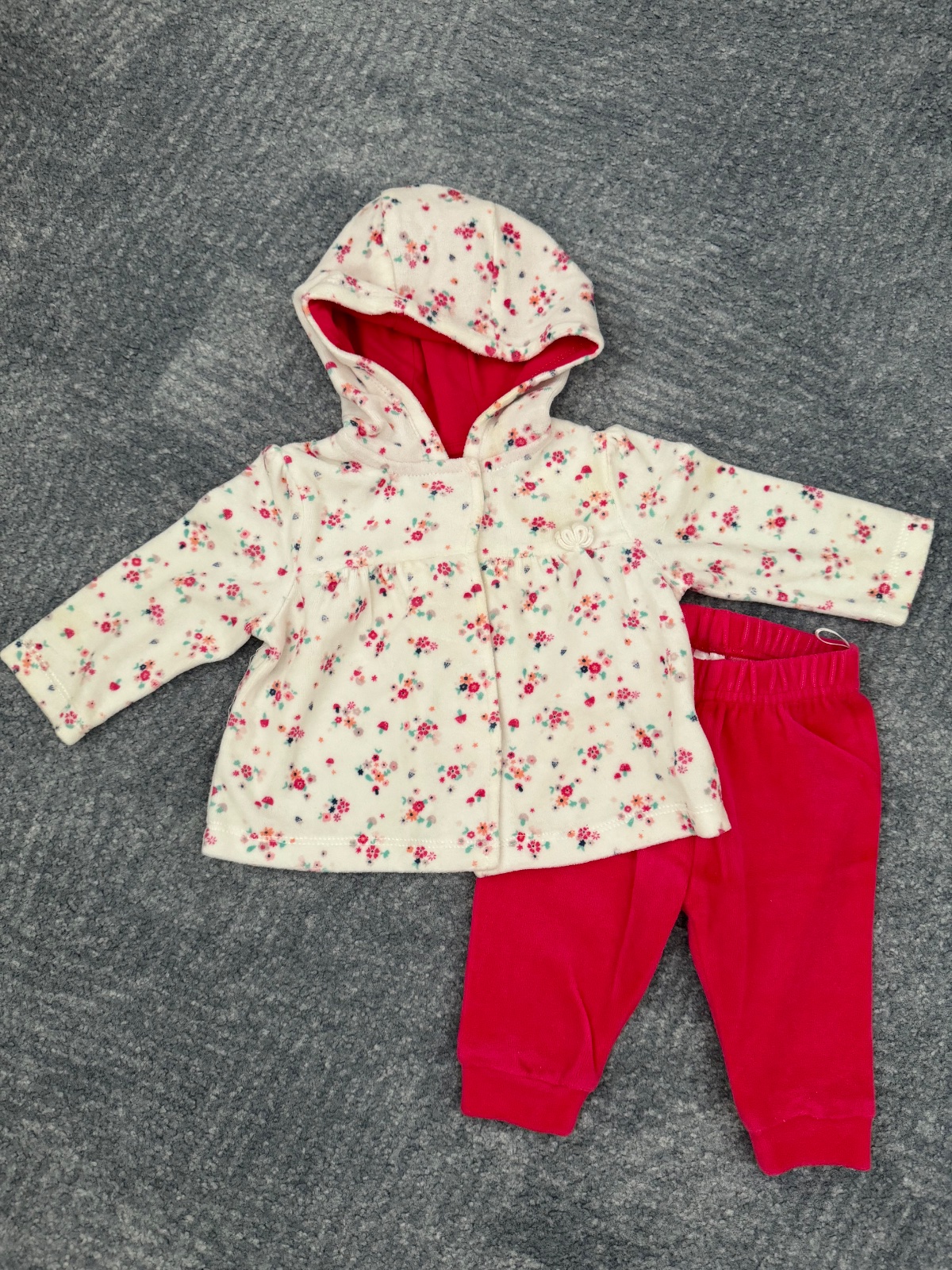 Všetko je značky Carter ´s, nosené len dcérkou,v super stave. Veľkosť 6M 1x body s krátkym rukávom 1x body s dlhým rukávom 3x nohavice 1x flísová mikinka 1x tenký svetrík 1x šatky s gaťkami