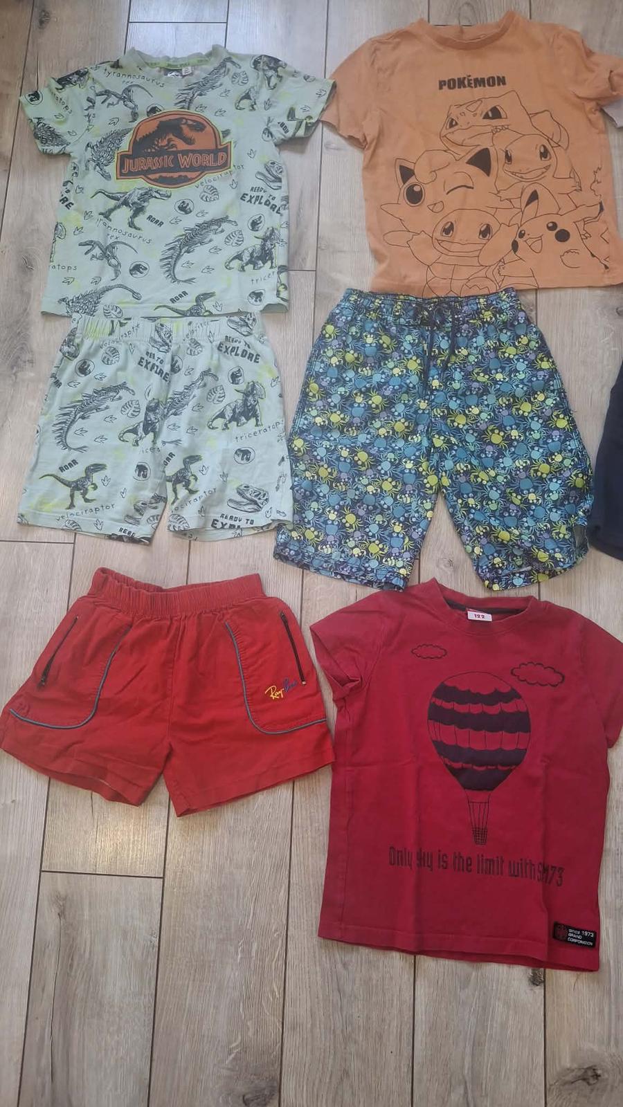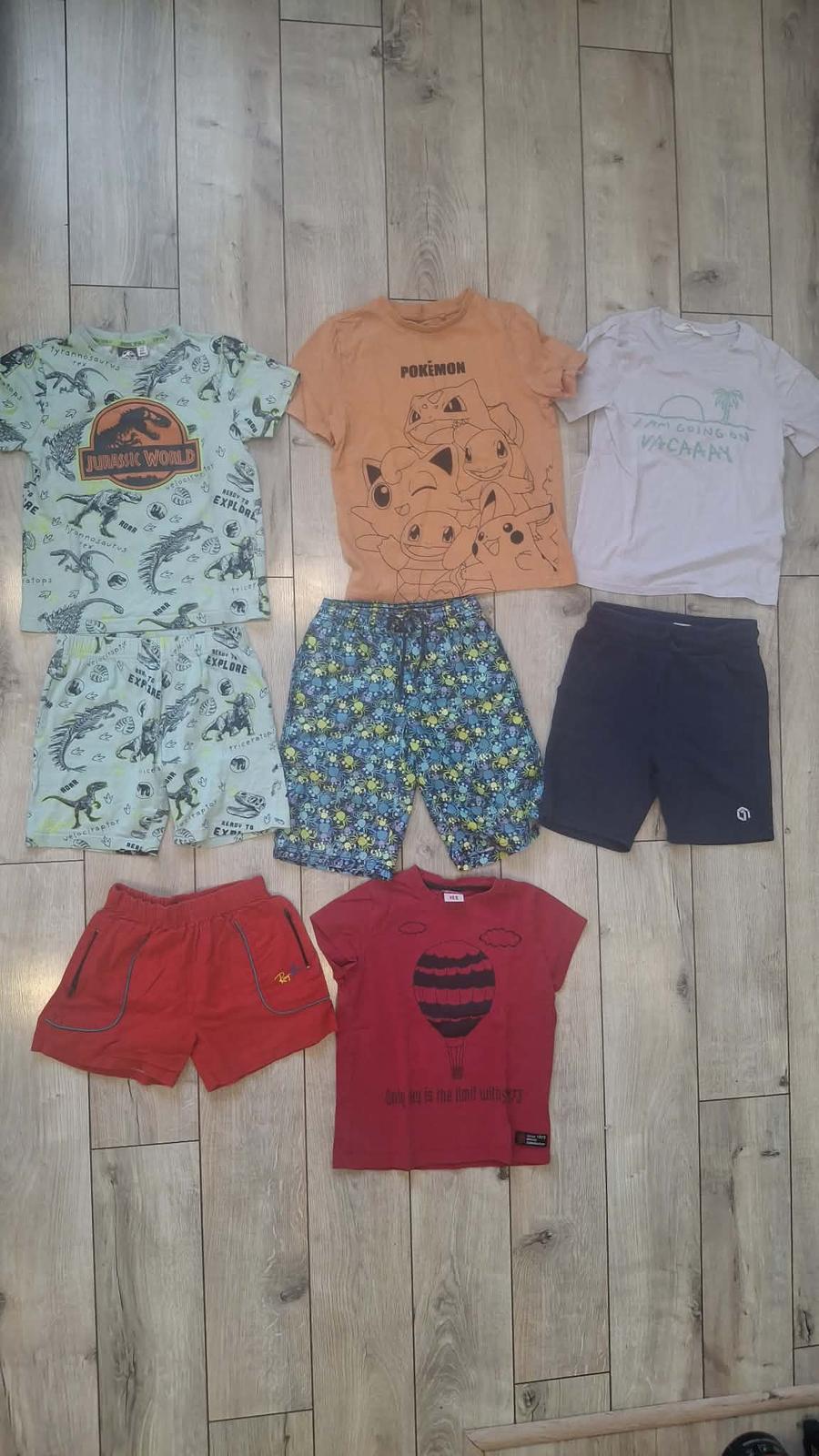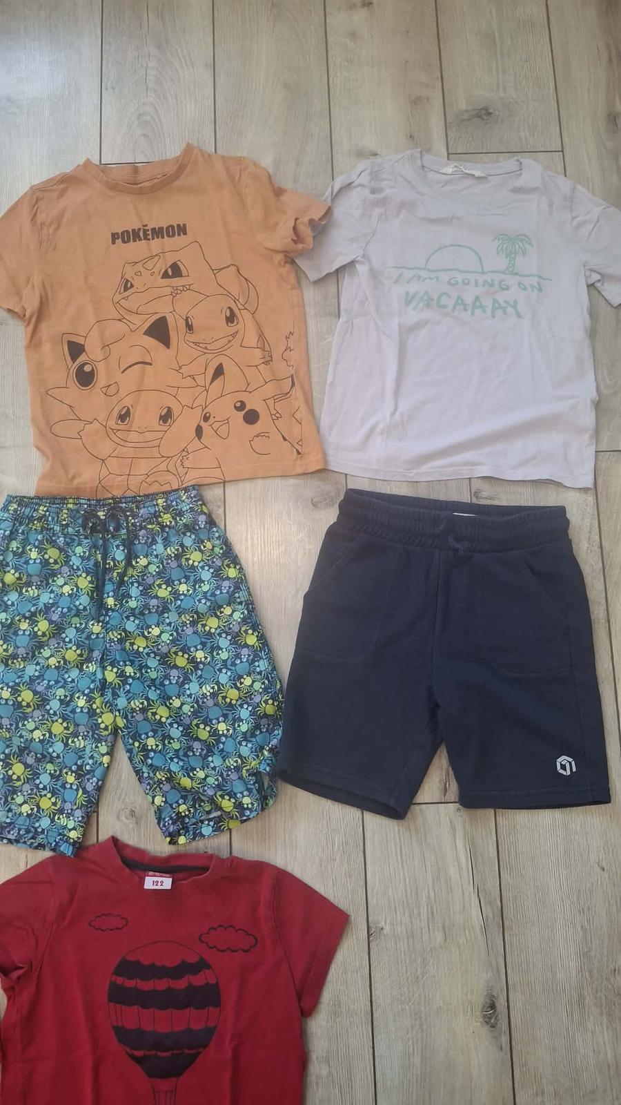 balik leto 122/128 velkost , tričko H&M , pokemon , pyžamko F&F , kratasky F&F 2x oblecene , palomino kratasky . červené tricko a kratasky gratis . Spolu 14€ , kludne aj po kusoch v prípade zaujmu .