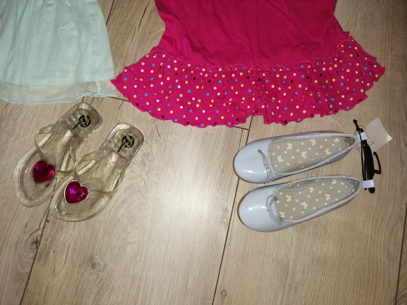 Šľapky Baťa, veľ 29, vnútorná dĺžka 18 cm, celková, výborný stav. Balerínky H&M, absolútny top stav, vnútorná dĺžka 18,5 cm, celková. Spolu 4 kusy.