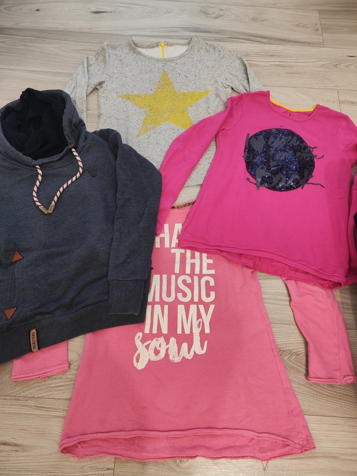 Malo nosene veci bez poškodení, svetrik s kapucňou má dlhšie rukávy, mne boli dlhé