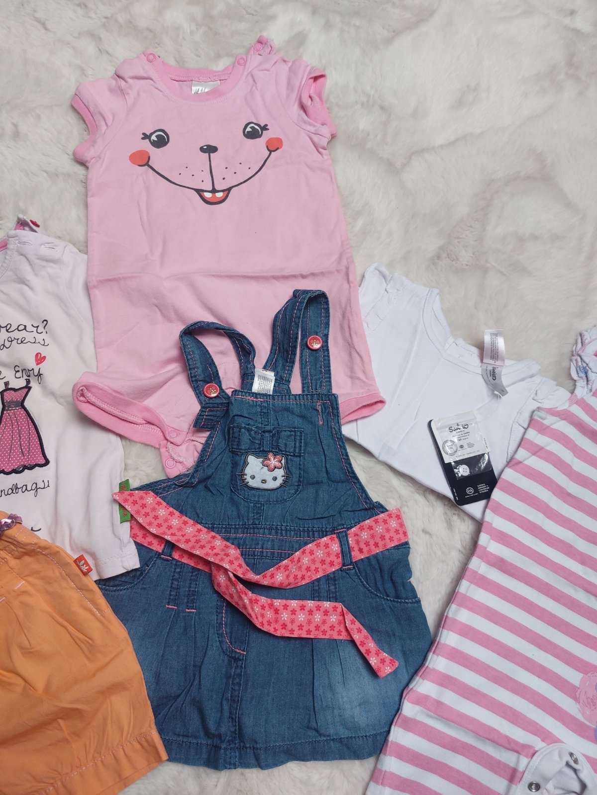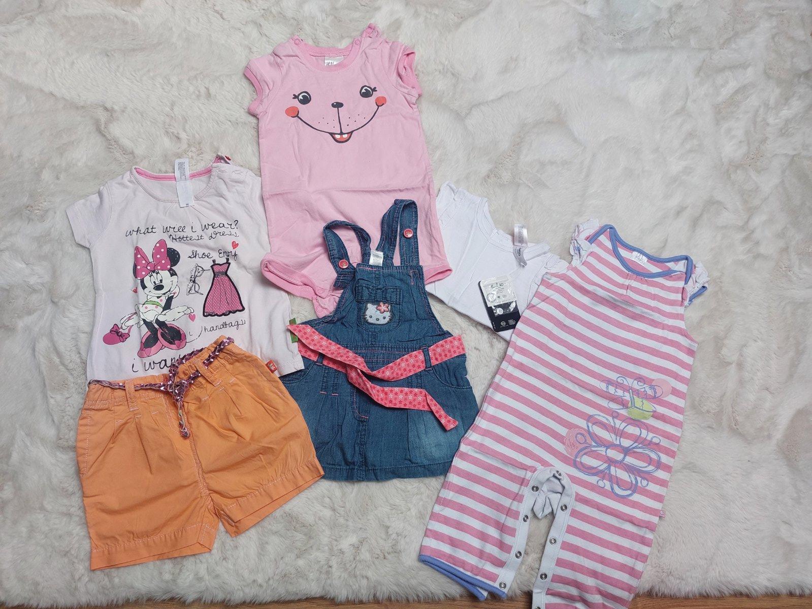 Kratase, tričko, 2x pyzamovy overal, sukňa a tričko. Cena spolu 6,50 Eur