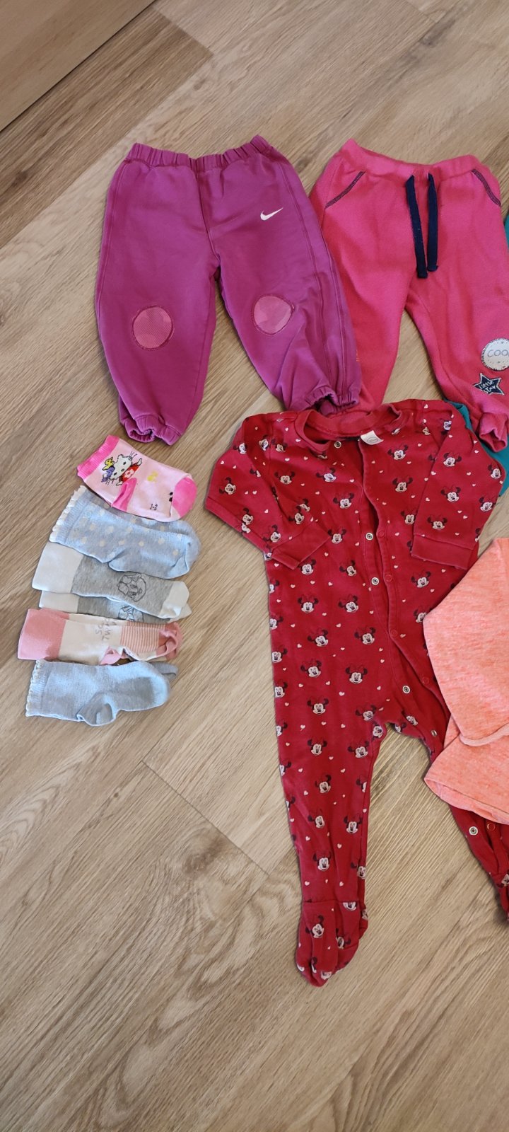 Balik veci, mix znaciek Nike teplaky fialove, Pepco, F&F, nieco aj do skolky, vacsina na doma, na dvor. Bez dierok, ale vidno pranie, akurat Nike teplaky 2 male dierky spredu, ponozky gratis. Vsetko sedi na velkost92