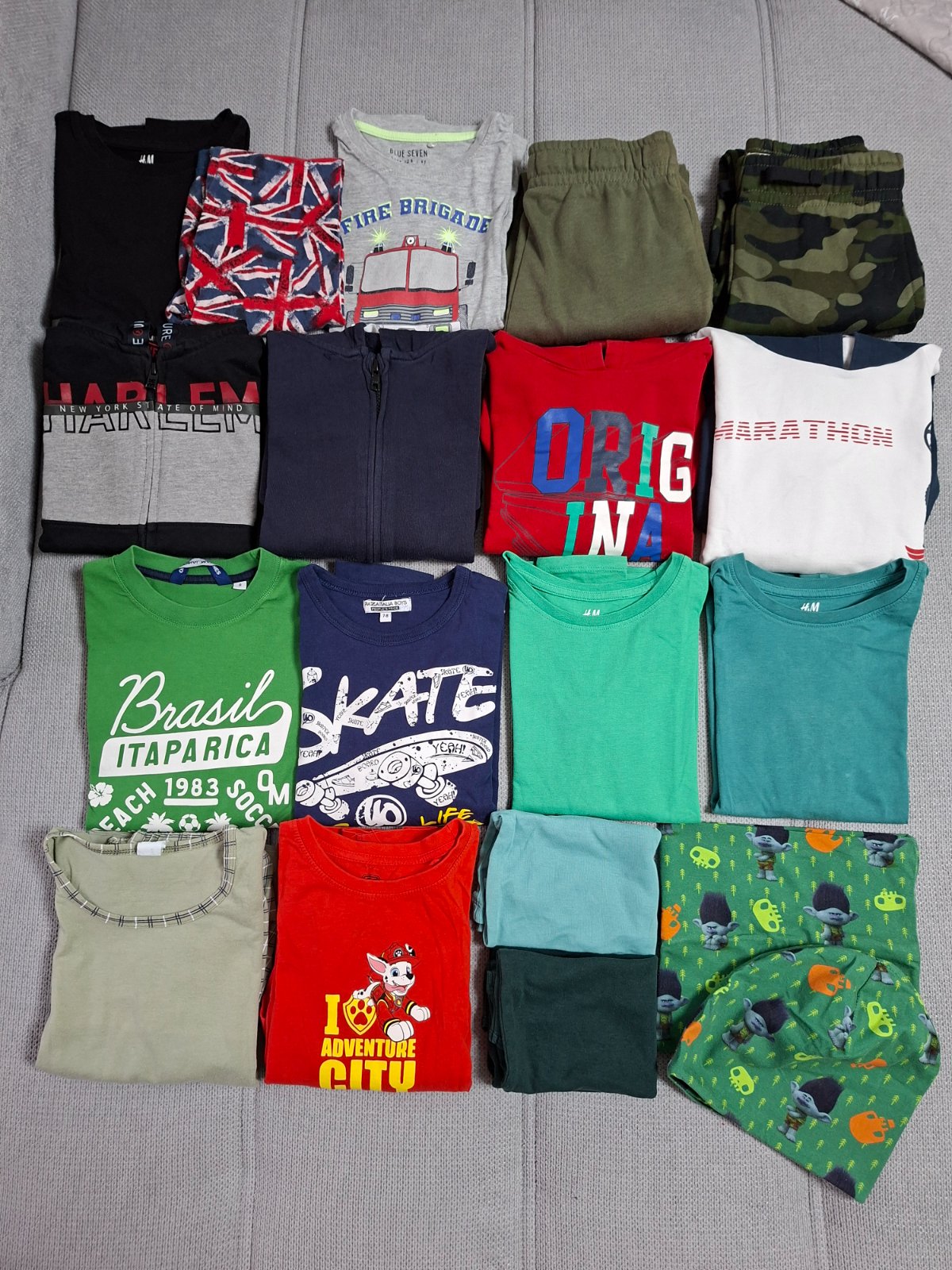 Predám balik oblečenia pre chlapca veľkosť 122-128cm, všetko dobré značky H&M, original marines, blue seven,...