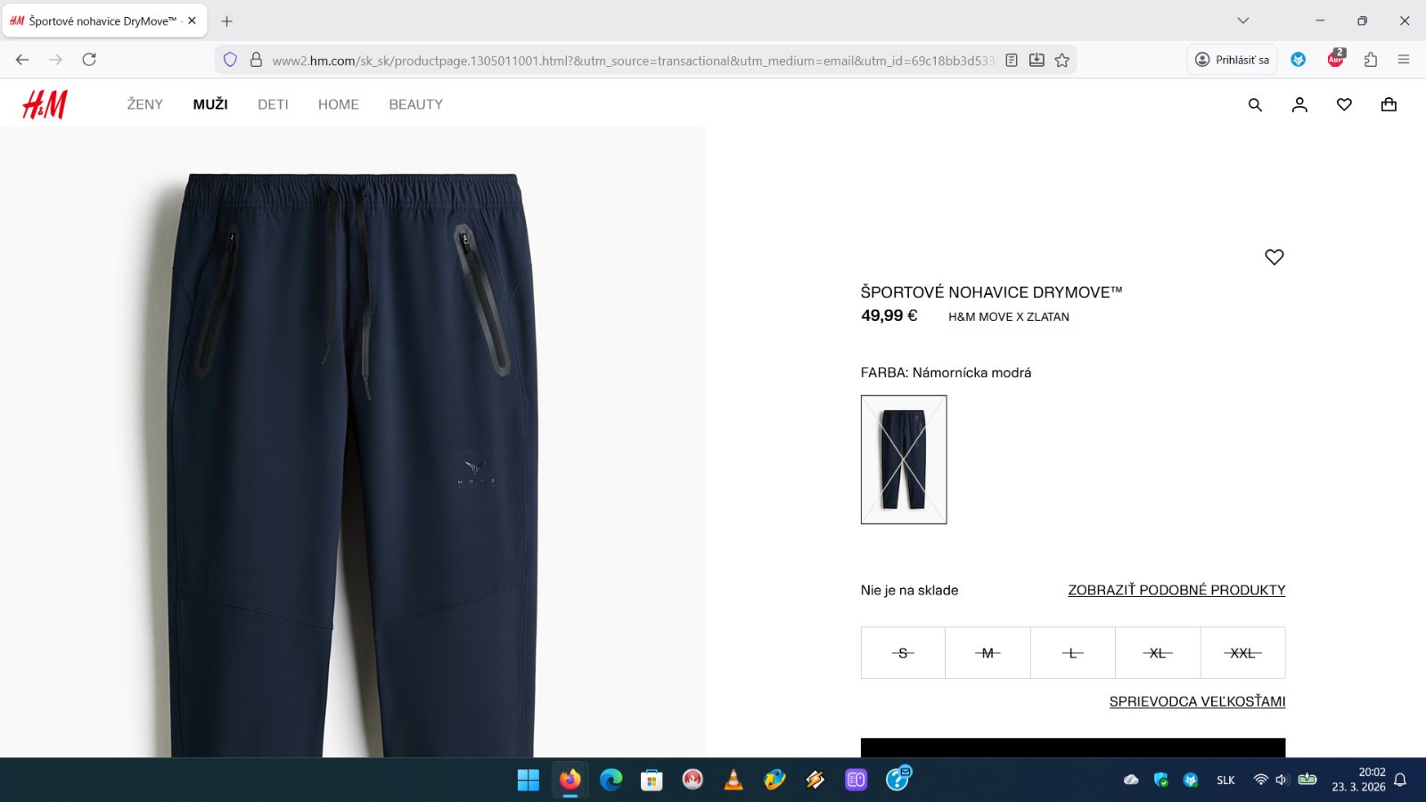 Druhé modré sú bežecké nohavice H&M Zlatan Ibrahimovič a sú z funkčného materiálu DryMove, ktorý odvádza vlhkosť z vašej kože a pri pohybe zabezpečí, aby ste sa cítili príjemne a v suchu. Je to strih carrot fit - mrkvový strih. Elastický pás s tunelovým sťahovaním a bočné vrecká na zips s lepenými švami. Zakrytá guma a zips naspodku. Materiál je pružný vo všetkých smeroch pre maximálne pohodlie a vyššiu voľnosť pohybu.