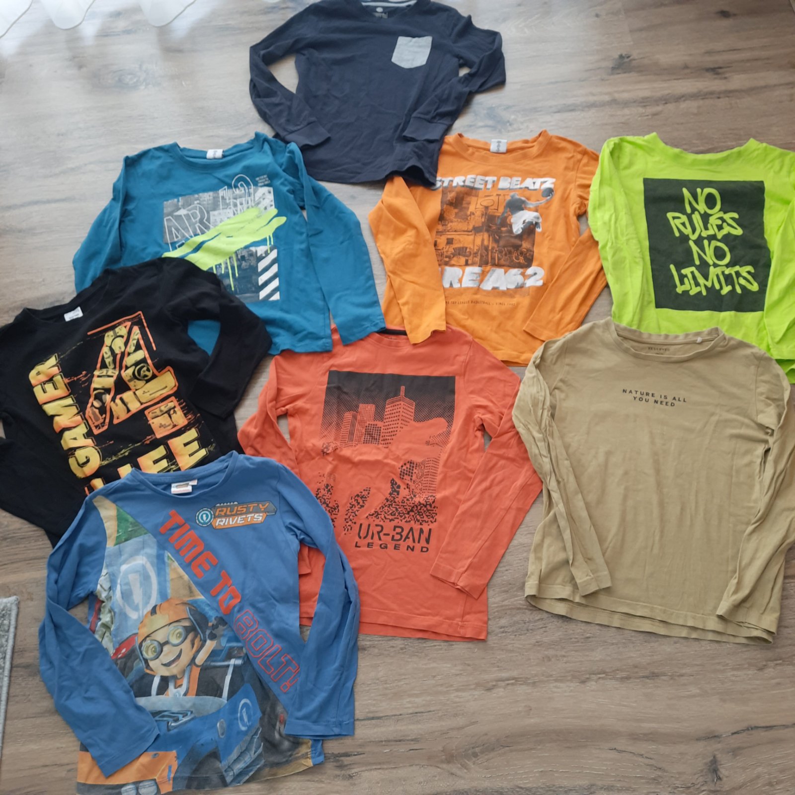 Predám rôzne oblecenie vo veľkosti 134.Cena za všetko na fotkáh ,13ks tričiek krátky dlhý rukáv ,1 ks podsite rifle,1ks nohavice,2ks rifle,1ks softvérová bunda 1ks bombe bunda 6ks teplaky,1ks pulóvre 2ks kraťase 1ks kosele