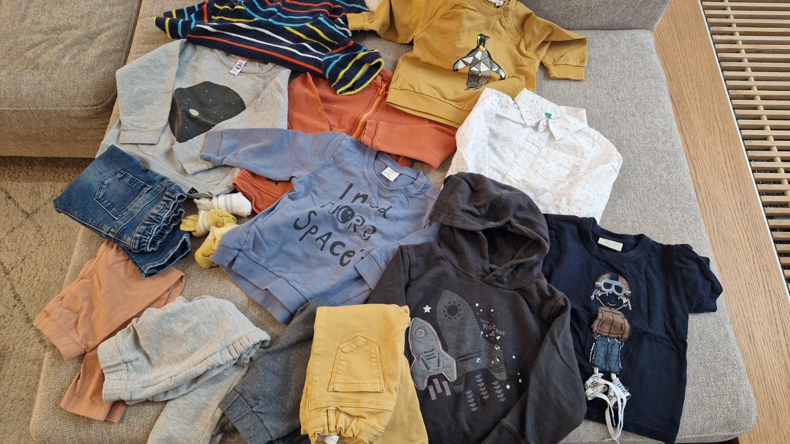 Krásne veci v balíku pre chlapca veľkosti 86 až 92,vale všetky cca rovnaké, kvalitné bez poškodení, veľmi pekný nosený stav, len na 1 teplacikoch mini dierka na kolene.