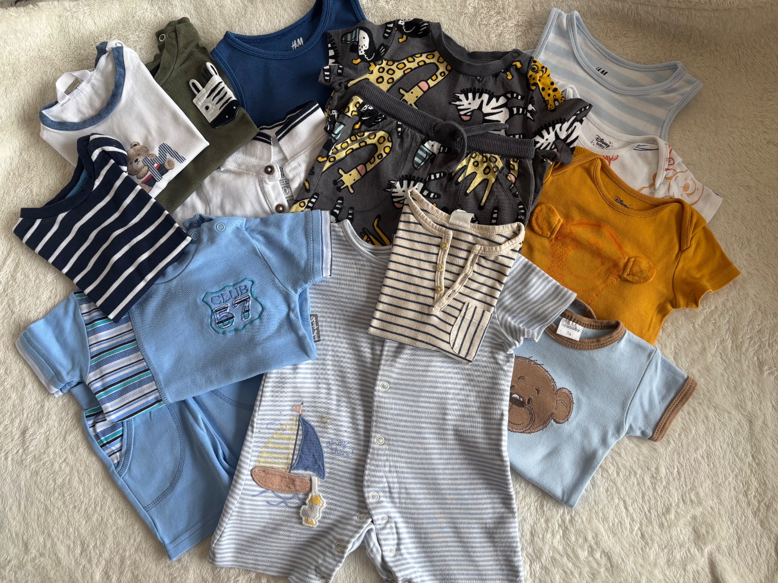 Mix obsahuje body tielkové, s krátkym rukávom, tričká s krátkym rukávom, letný overal, súpravy tričko-kraťasy.