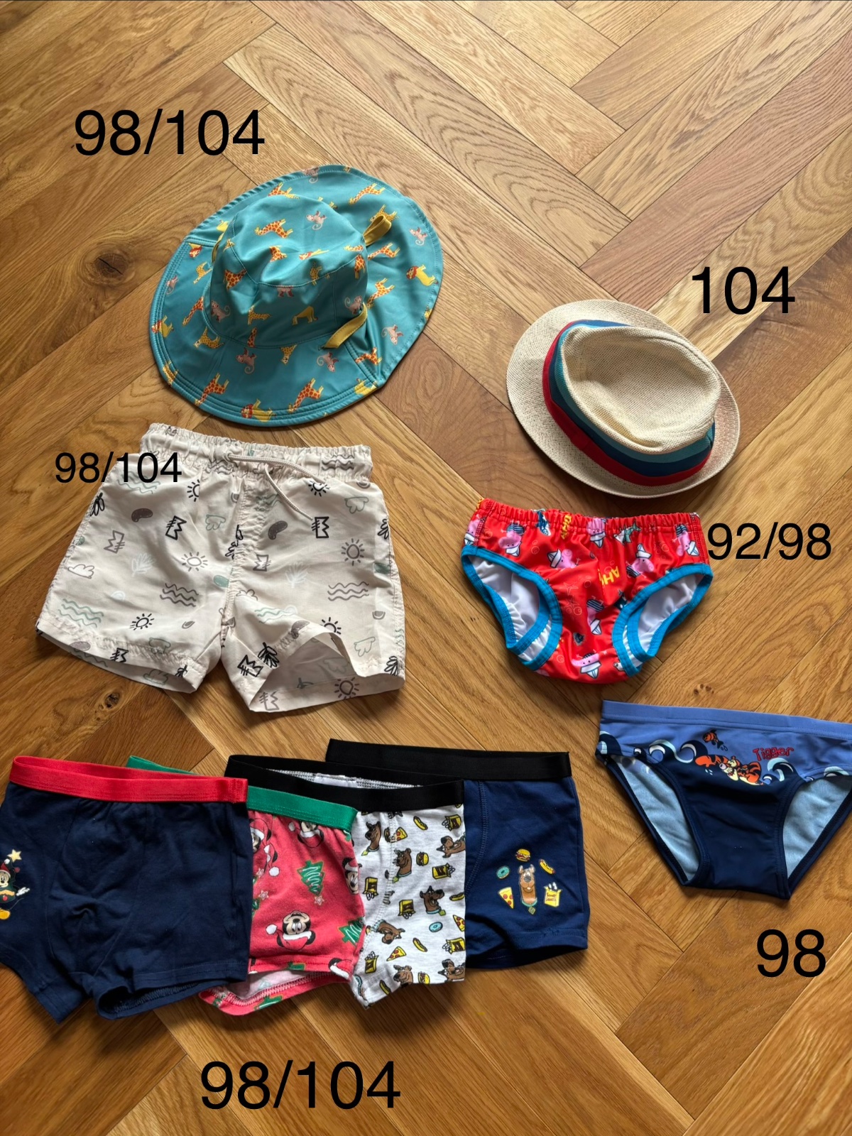 Plavky,klobuky 98/104, 86–98