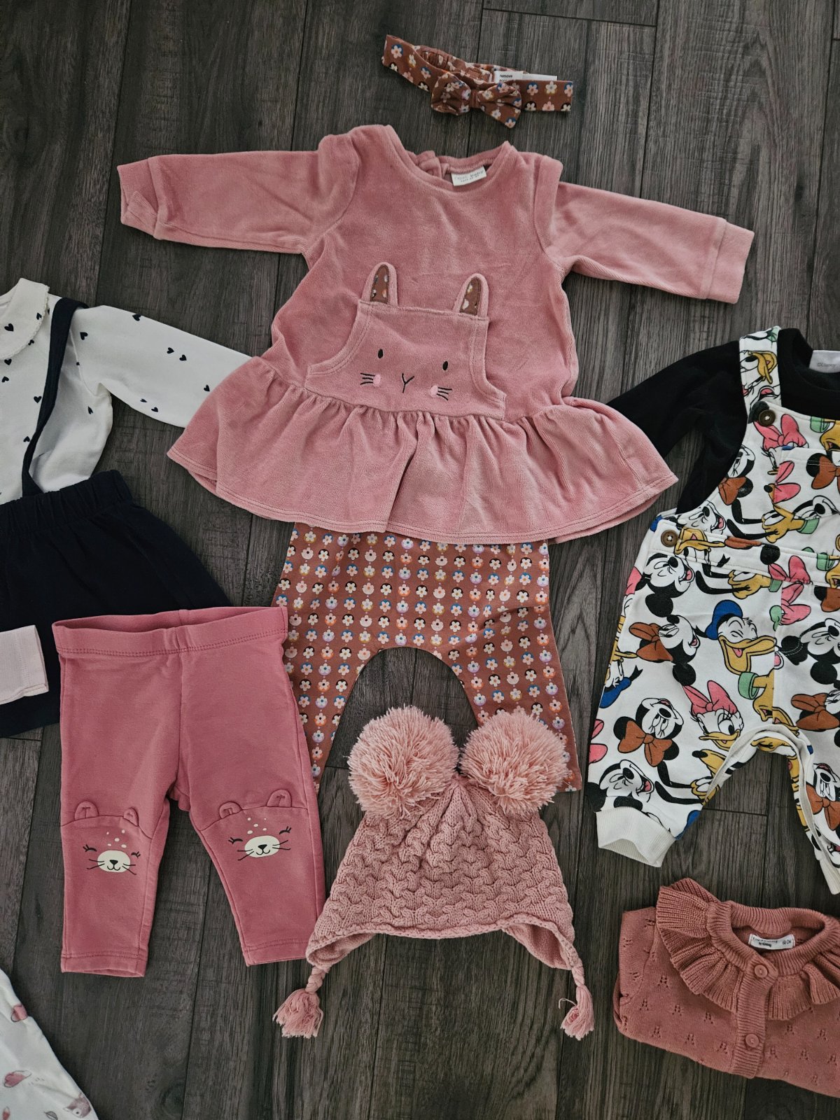 F&F svetríková súprava so zajkom, jesenná súprava s ježkom a disney tepláčky na traky s body
