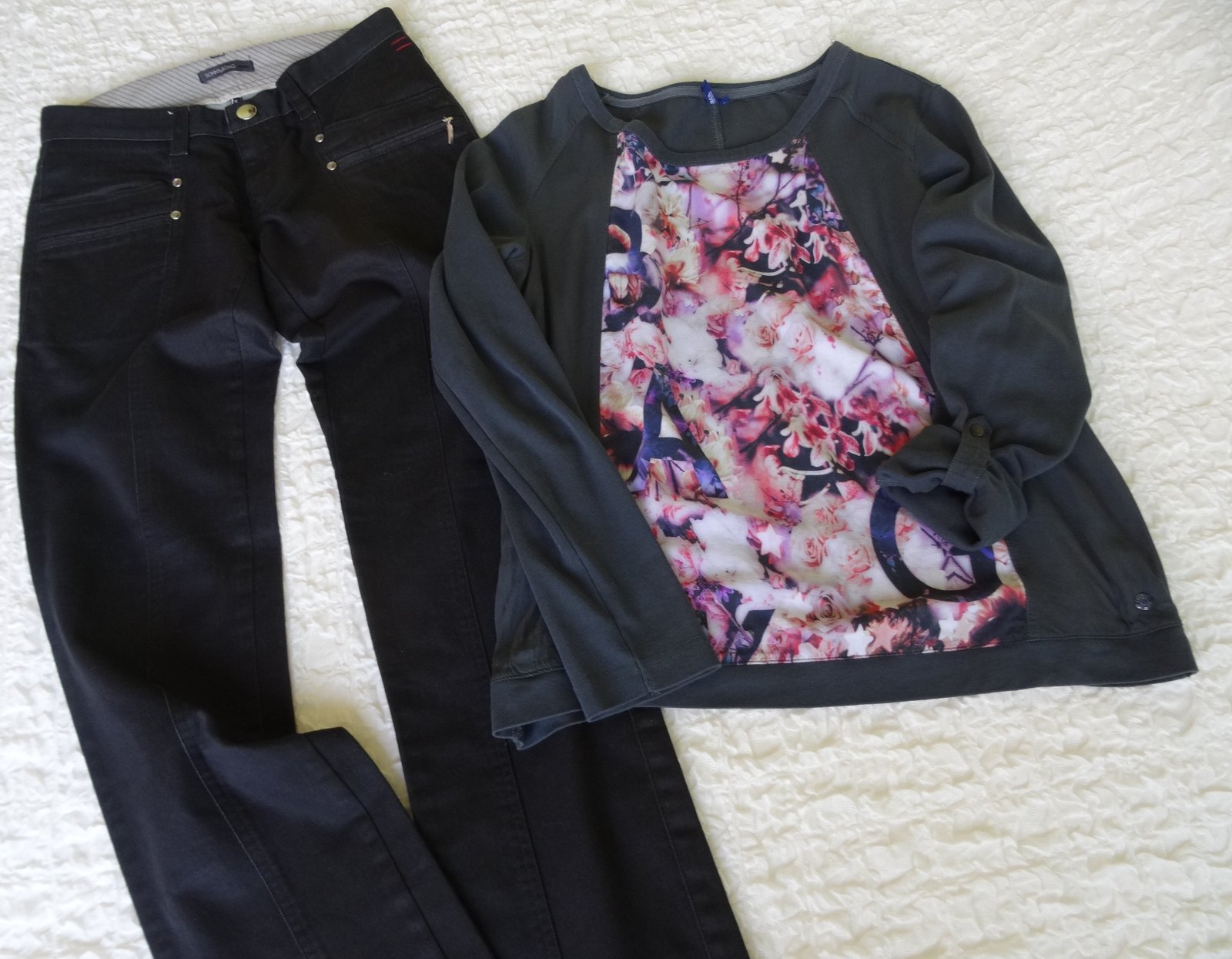 Top má roll up rukávy, ale pri fotení sa mi podarilo jeden nit zlomiť - viď posledná fotka, takže buď opraviť alebo len ako rukávy dlhé.