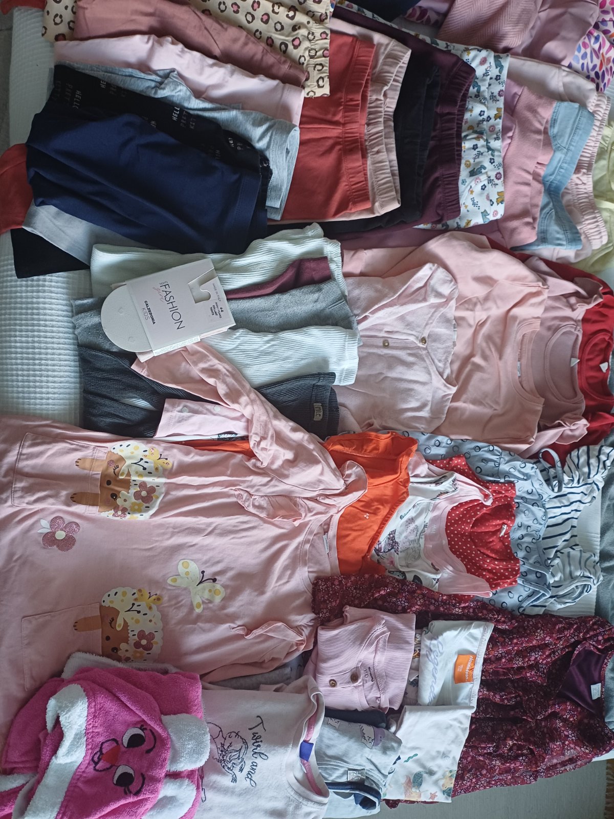 Balík vecí pre dievča,mix vecí- zimná bunda,parka, kabát, sako, riflova bunda, 2 ks sukne, 1 ks kraťasy, 1ks ruflove kratasy na traky, 2x tepláky, 1x riflové legíny, 1x softshelove nohavice, 5x vyteplené legíny, 7x legíny, 2x tričko s dlhým rukávom, 1x svetrík,1 x mikina, 6x pančuchy, 1x silonky, 6x šaty s krátkym rukávom, 2x šaty s dlhým rukávom, 3x pyžamo dlhé, 2x pyžamo krátke, 1x župan.