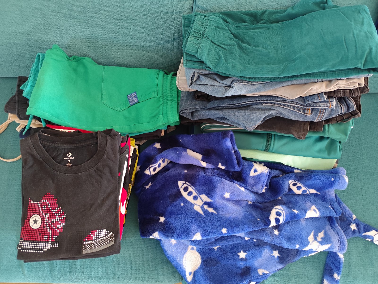Balík oblečenia: 5ks rifle, 1ks menčestráky, 7ks tepláky, 13 ks tričká s dlhým rukávom, 5ks mikiny , 1 ks tepláková súprava + župan