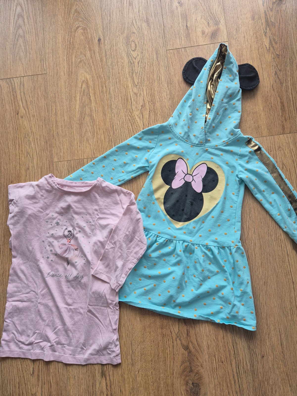 2 ks mikín vhodné na donosenie,okolo domu,na ihrisko. Ružová mikina s korunkou sa oblieka cez hlavu, Zn. Dopodopo, v. 110/116 - nemá poškodenia, ale je už dosť žmolková, spraná. Mikinka s hviezdičk...
