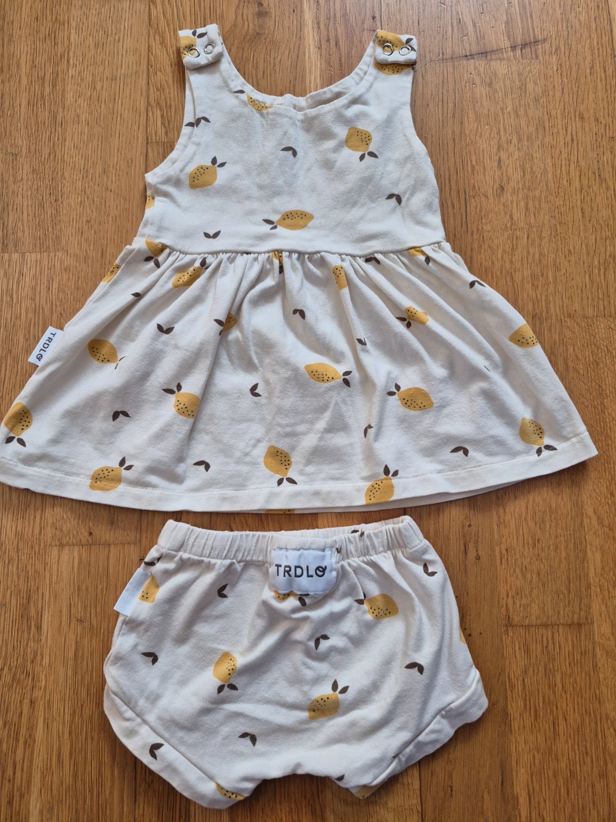 Ponúkam párkrát oblečené šaty a kraťase slovenskej značky Trdlo. Veľkosť 86. šaty sú nositeľné aj v chladnejšom počasí na body s dlhým rukávom