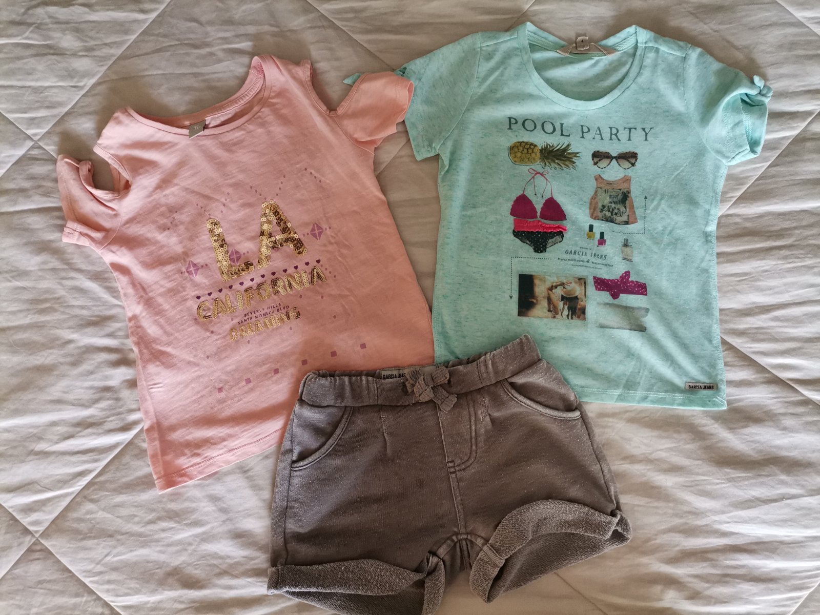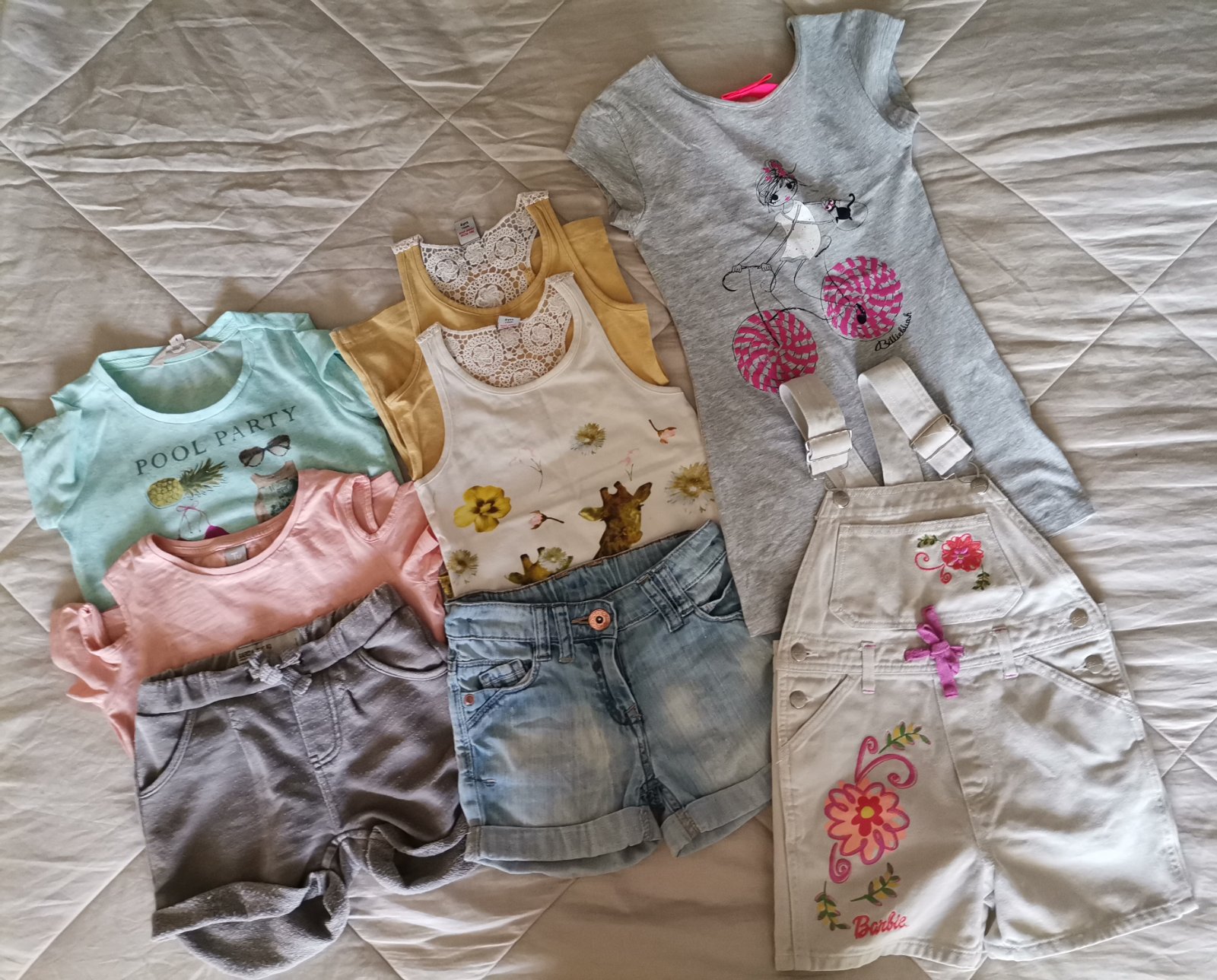Veľký balík oblečenia pre dievčatko. Bunda, rifle, šortky, mikiny, šaty. Všetko sedí na veľkosť 110/116 (4 - 6 rokov). Spolu 25 kusov, všetko v dobrom stave.