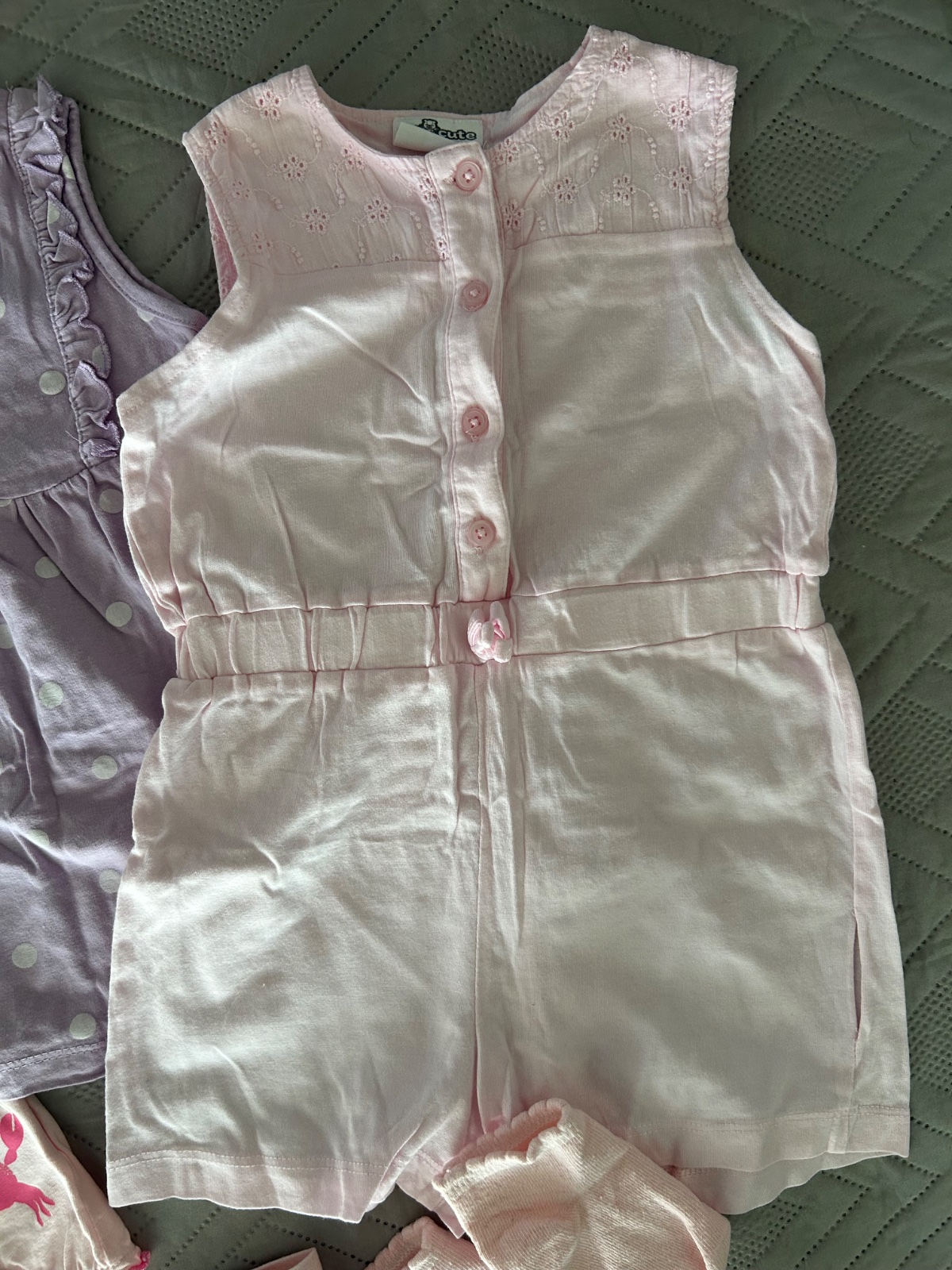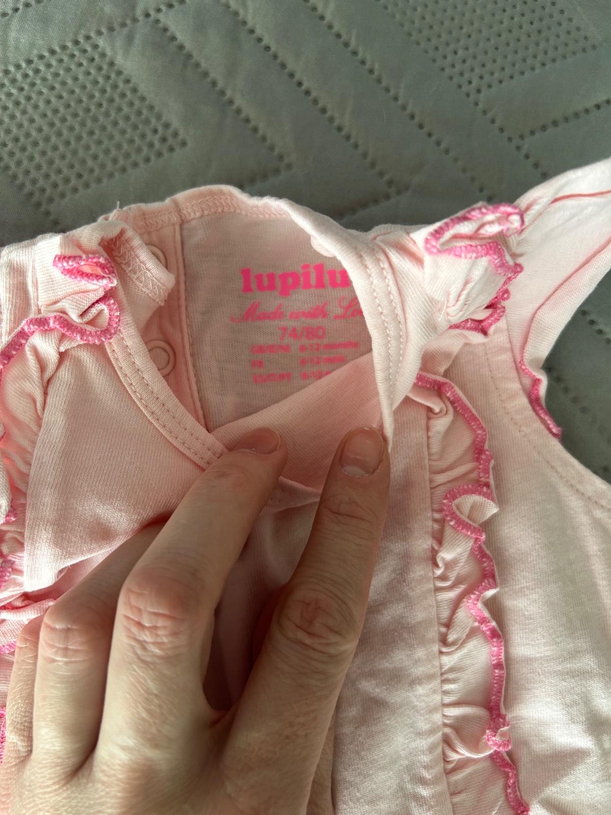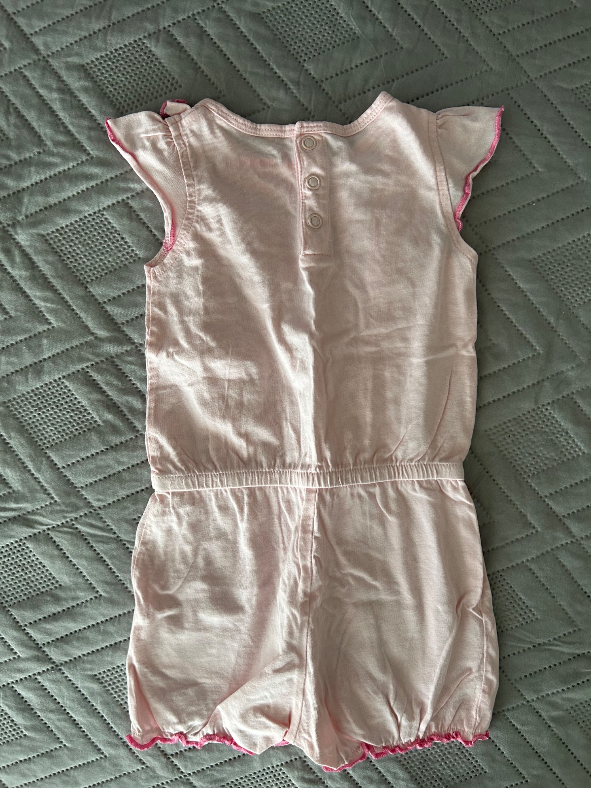 Ružový overalík s výšivkou z pepca - oblečený asi 2x, veľ.74, sadne aj na 80, zapínanie vpredu na gombičky