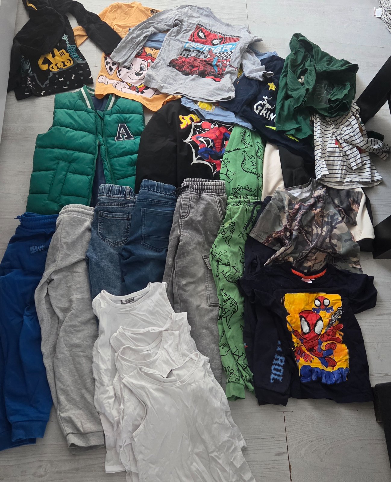 Predam oblecenie 122/128 ale vacsina 122 gate. Tricka skor 128.Nepremeriavam. veci su nosene, ale ziadne diery a flaky.