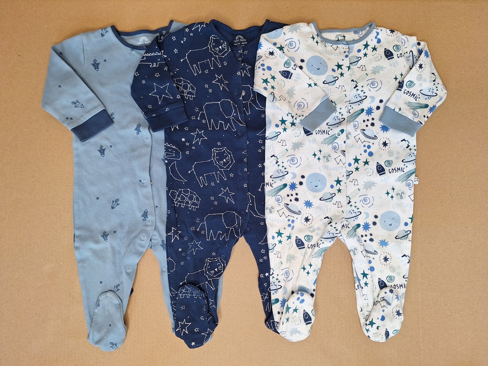 Predám set 3 pyžám s vesmírnou tématikou, veľkosť 6-9mesiacov. Použité, v dobrom stave. Cena + poštovné