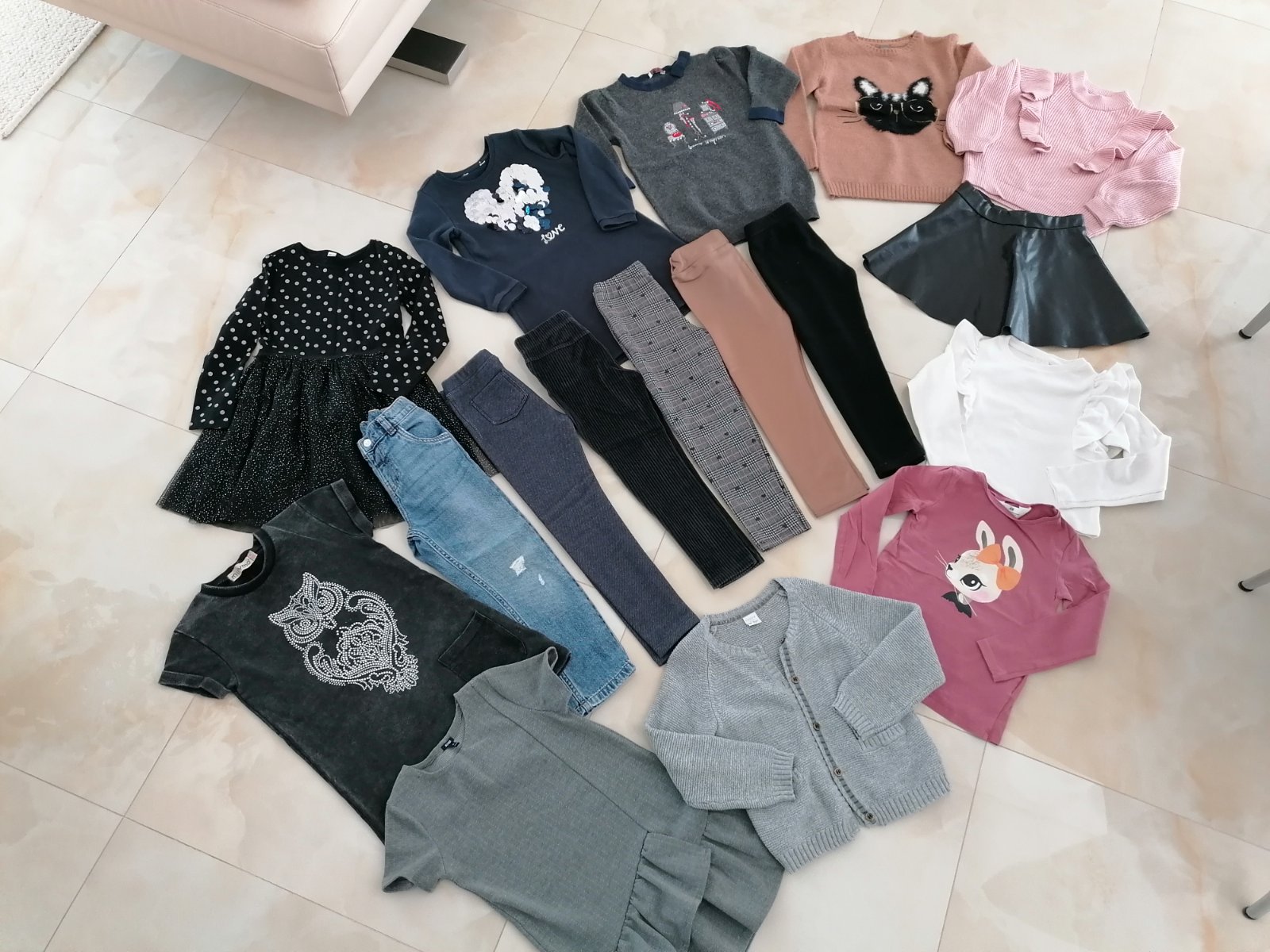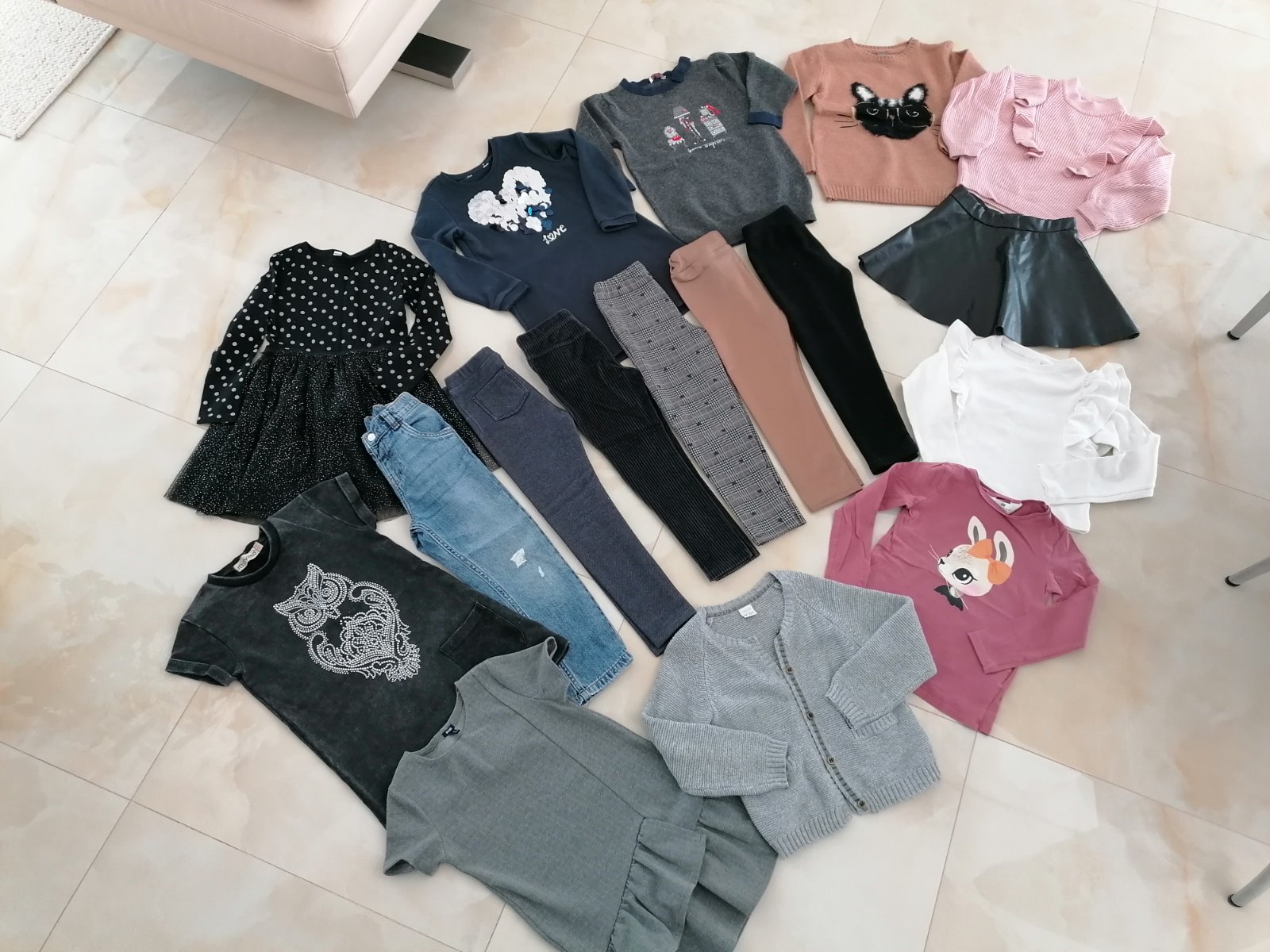 Velkost 116, lahko kombinovatelne, leginky teplejsie, znacky Zara Lindex H&M Kiabi...