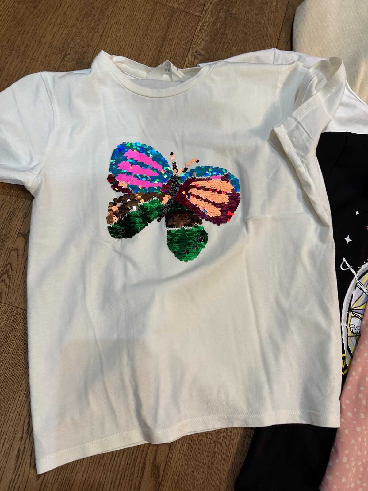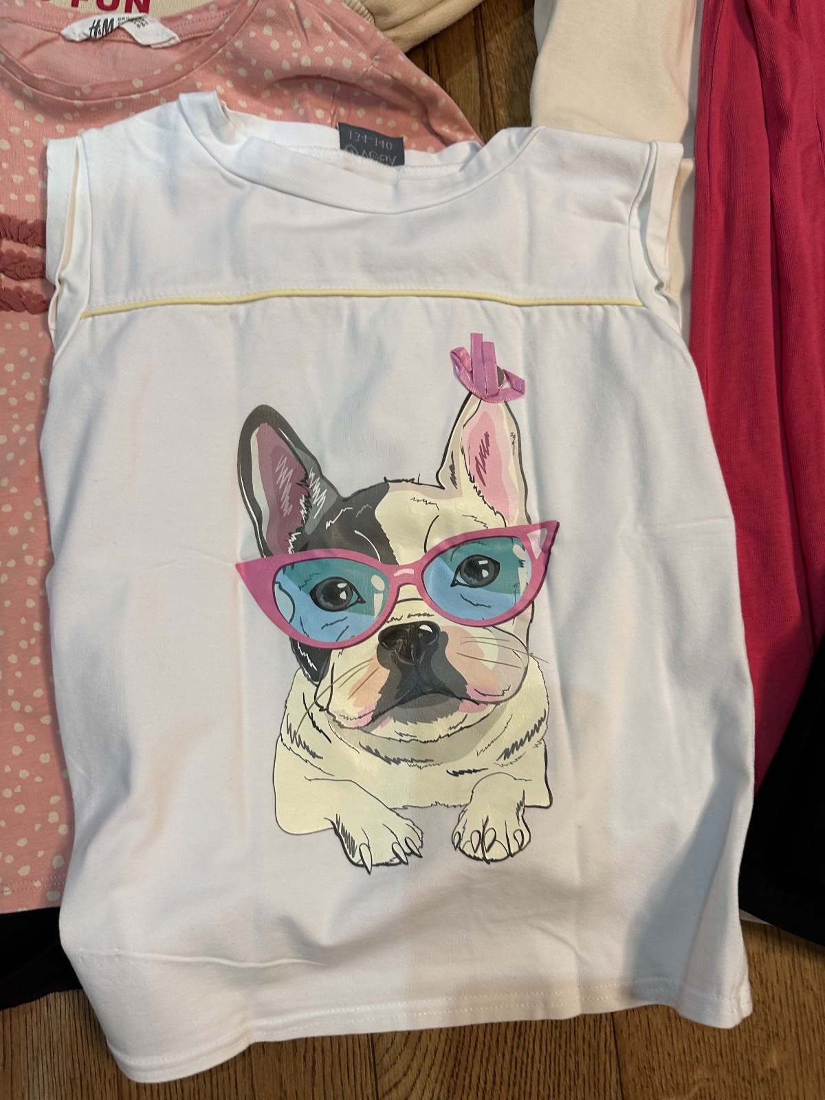 Balík tričiek, ružové 1x obleč, kvietkované HM top stav, 2 - 3 nosenejšie, niekt.novšie, na motýlikovom slabučké fliačiky, bežne nevidno.
