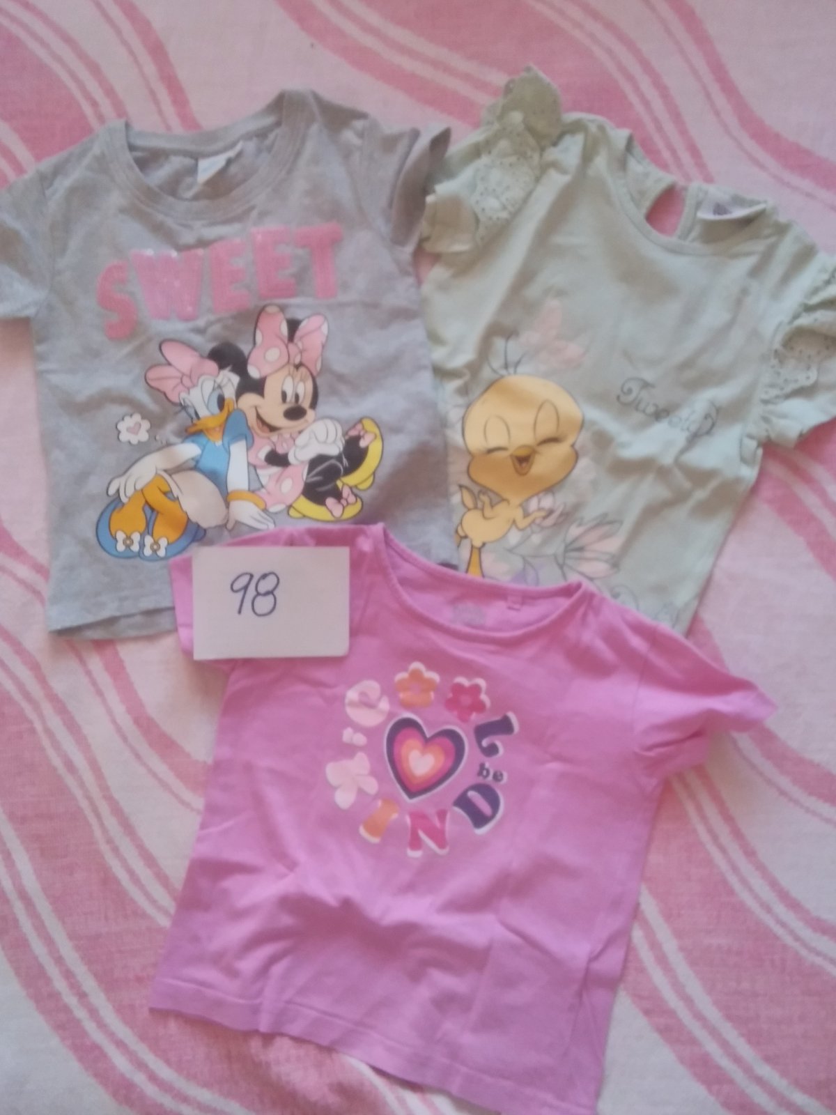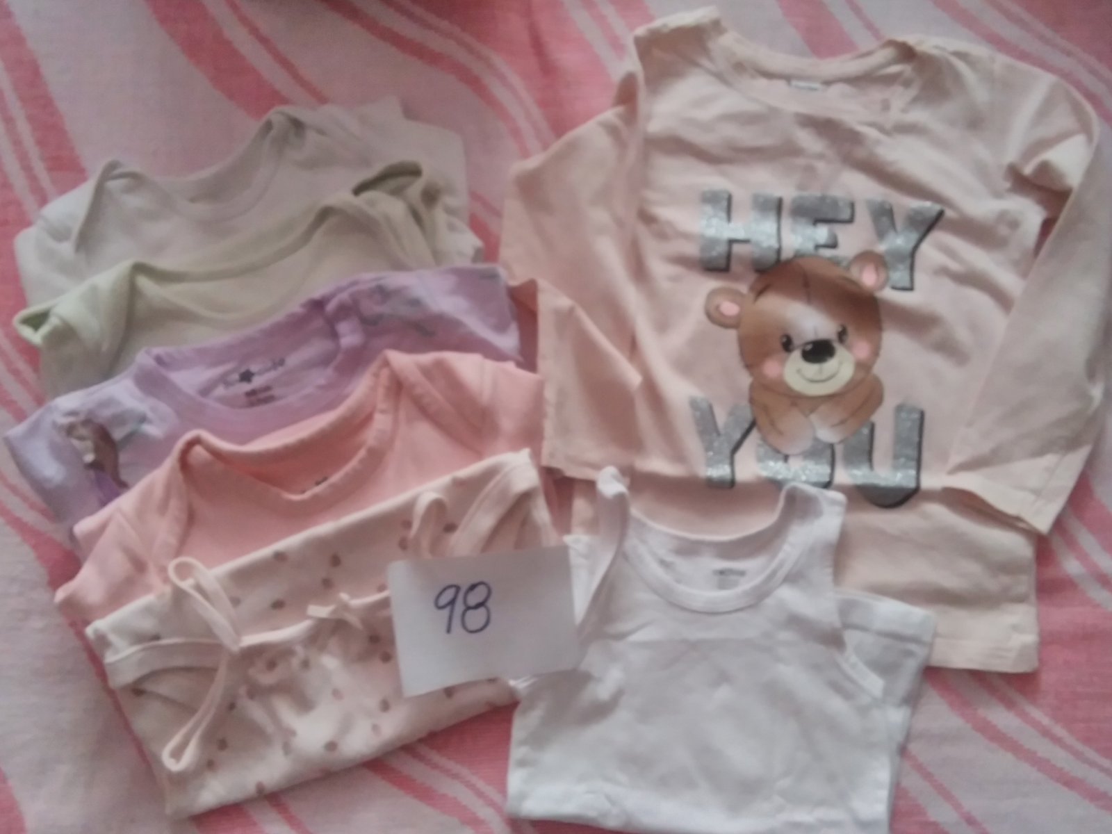 Posúvam ďalej balík dievčenského oblečenia veľ 98, oblečenie bolo používané, bez poškodenia. Spolu 16 ks za 12€+ poštovné, prip. osobne