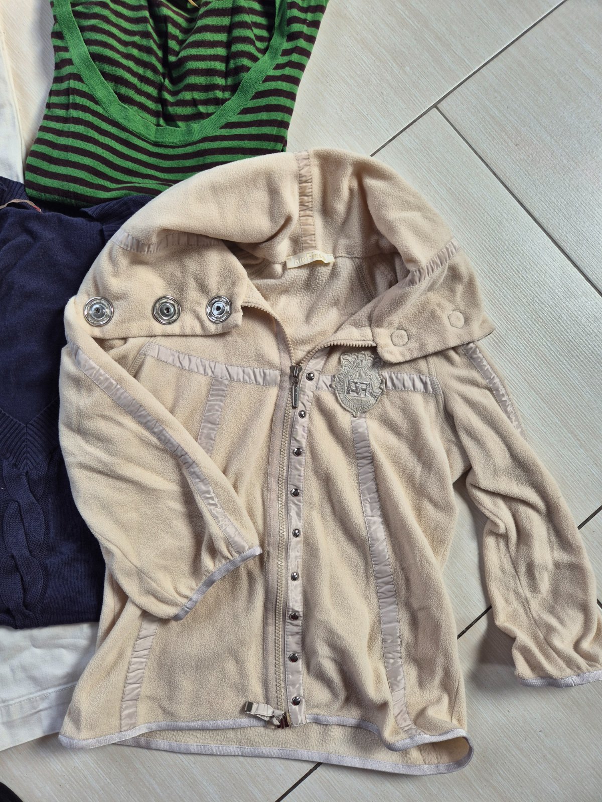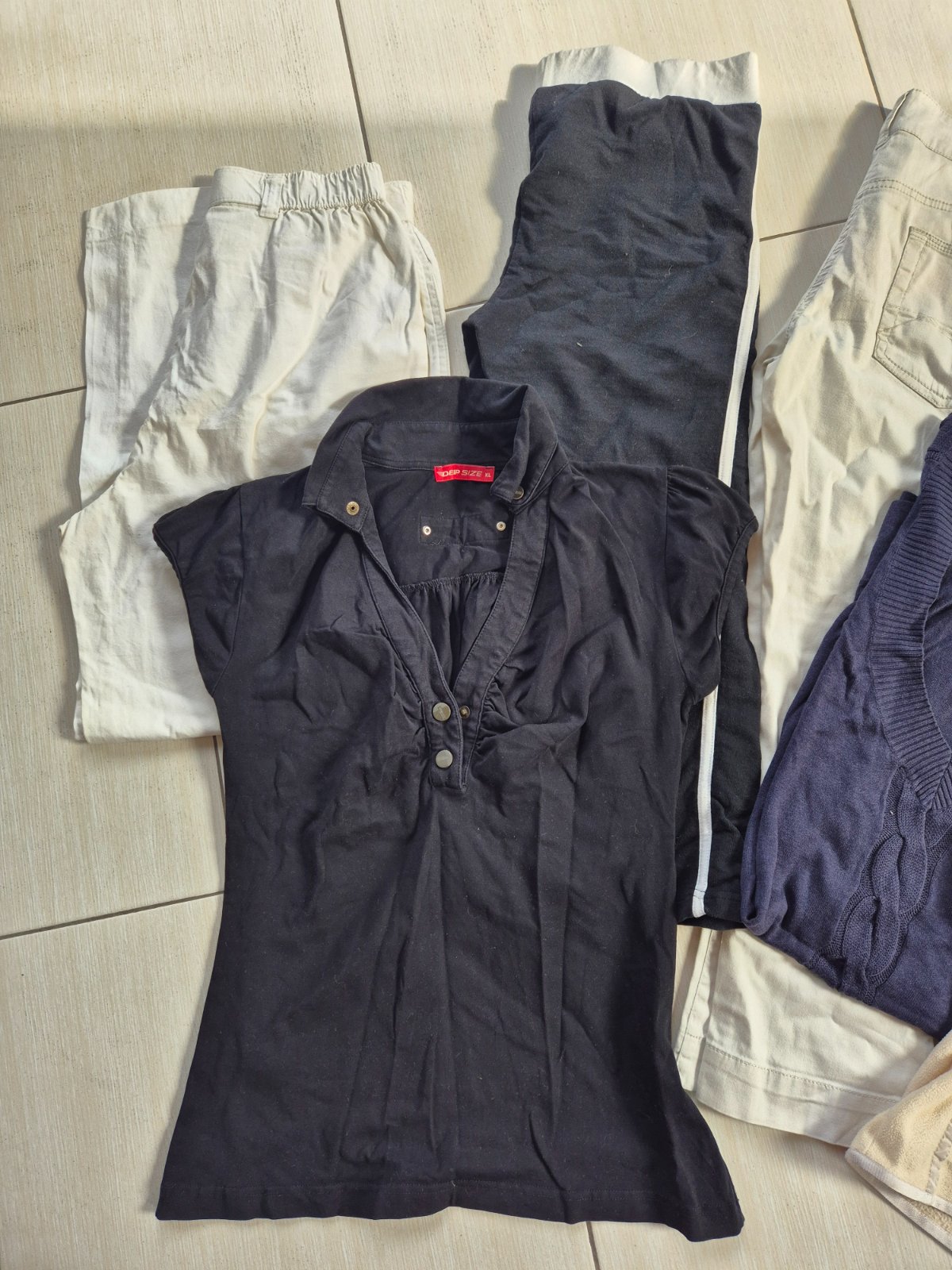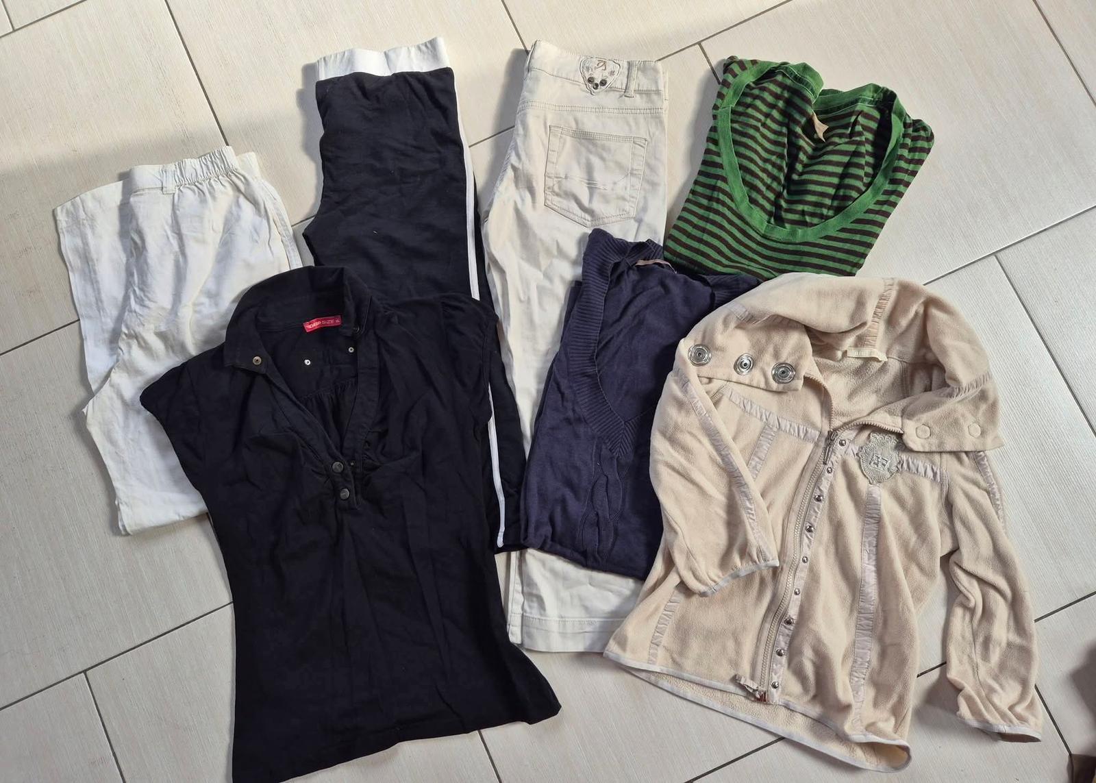 Predám balík veci. 1x 3/4 tepláky, 2x nohavice 3/4, svetrikové šaty, sveter, tričko a mikina
