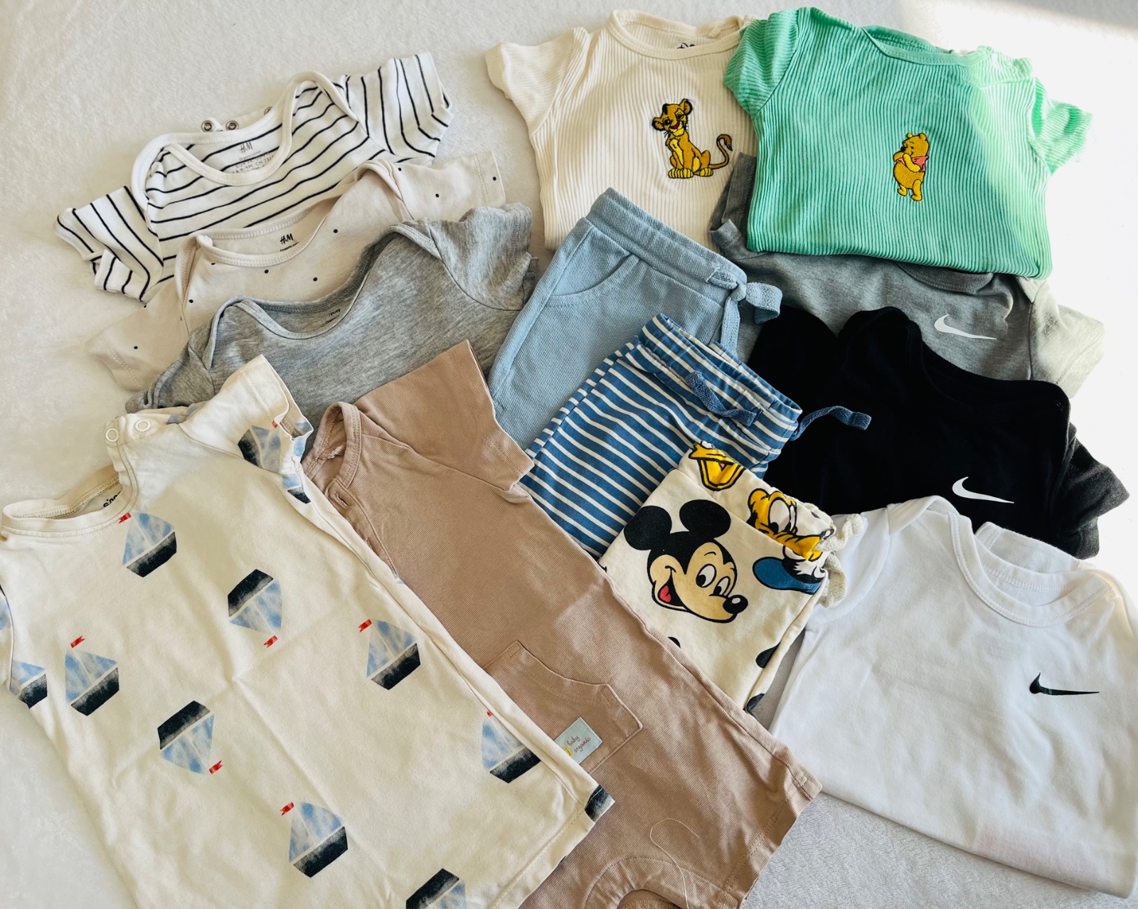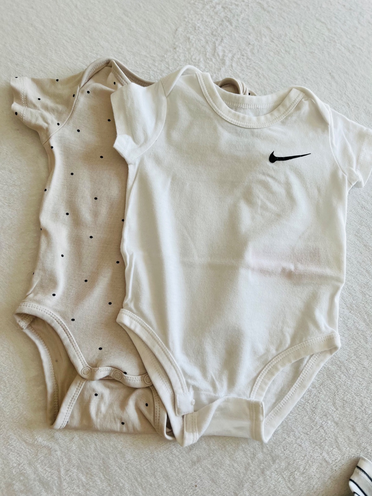 Nike body pise 62-68 ale na poslednej foto som ich prirovnala k Hm bodinkam, preto sme ich nosili súčasne so 74, lebo boli väčšie .