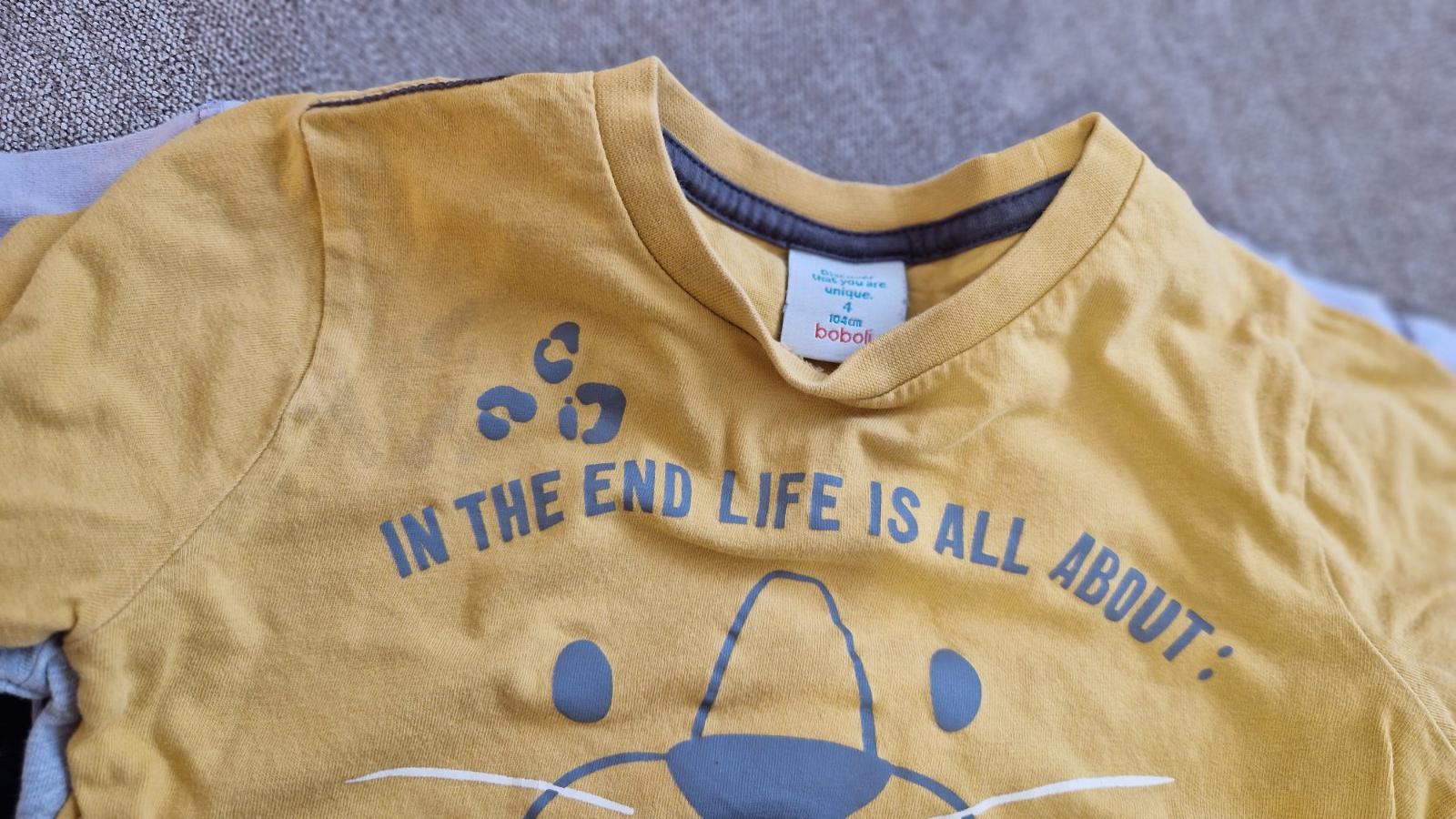Sú tam menčestrové nohavice úplne nové Sergent Major, modré rifle Zara, 2 ks nohavíc Zara a H&M, 5 ks teplákov (3 ks Lindex, 1 Next a 1 neviem), 1 košeľa Benetton, 3 mikiny (2 Lindex, z toho jedna s vianočným motívom a jedna Next), 4 ks tričiek s dlhým rukávom(3 ks Lindex a 1 ks Sergent Major nové), 13 ks tričiek s krátkym rukávom rôzne značky (Lupilu, Lindex, H&M, Under Amour, policajné dovezené z USA, Boboli 2 ks,..)