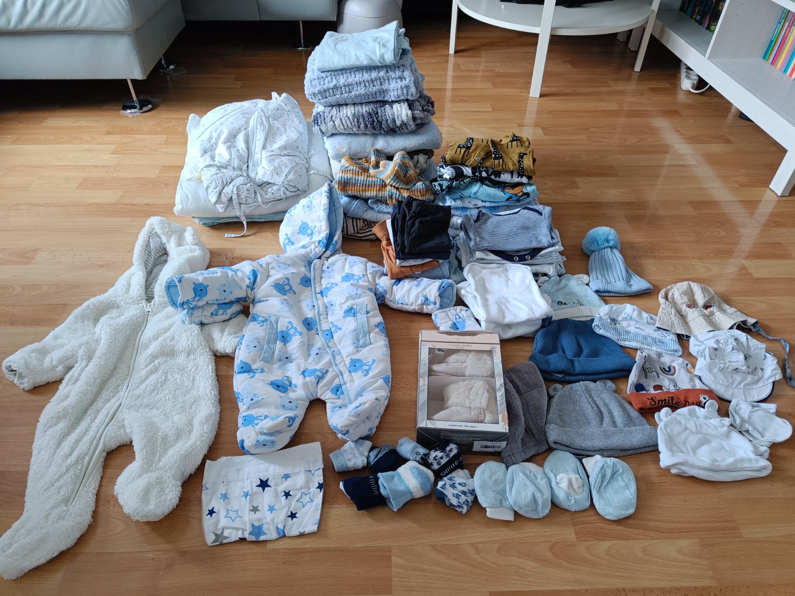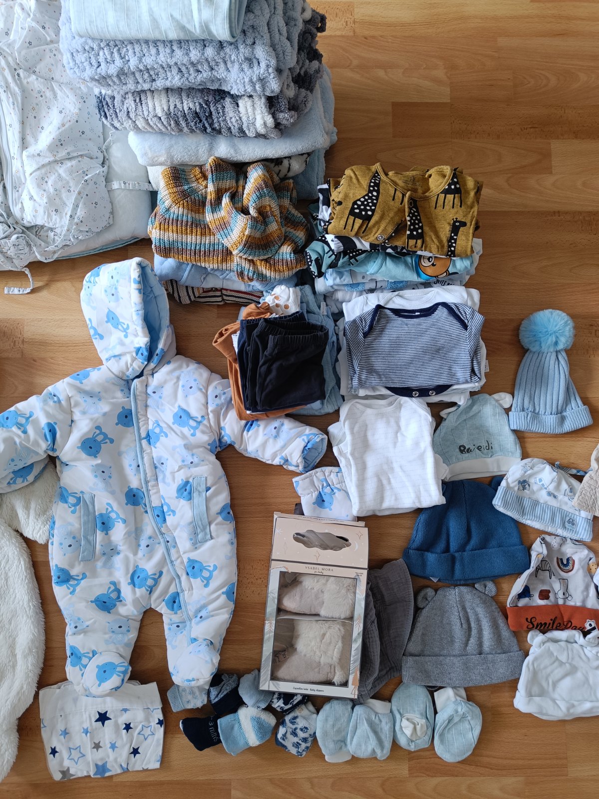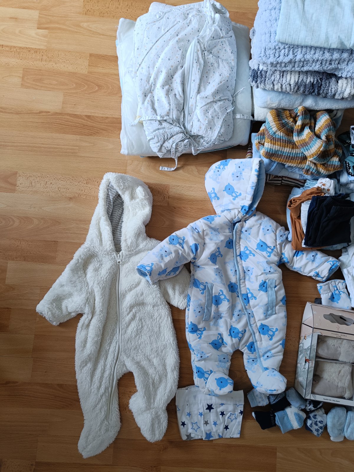 Predám balík veci pre bábätko (pre chlapca aj dievčatko). Všetko je to ako nové, žiadne poškodenia. Sú tam zavinovačky, deky, oblečenie vo veľkosti 0-3 mesiace ( prechodný overal, zimný overal, dlhé nohavice, krátky rukáv,dlhý rukáv, body, svetre, čiapky, ponožky)