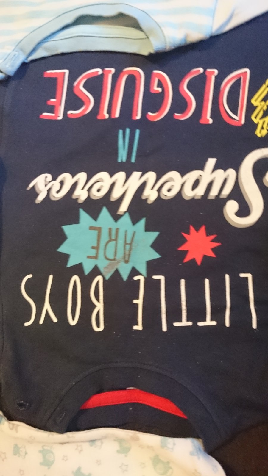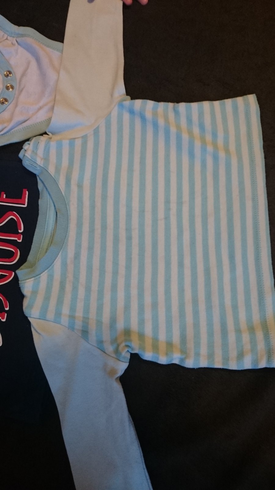 Tričko s krátkym rukávom, oblečené iba raz no po praní sa farba trocha rozprášila viď foto. Značka F&F. Inak nepoškodené. Veľkosť na 6-9 mesiacov. Cena 0,80 eur.