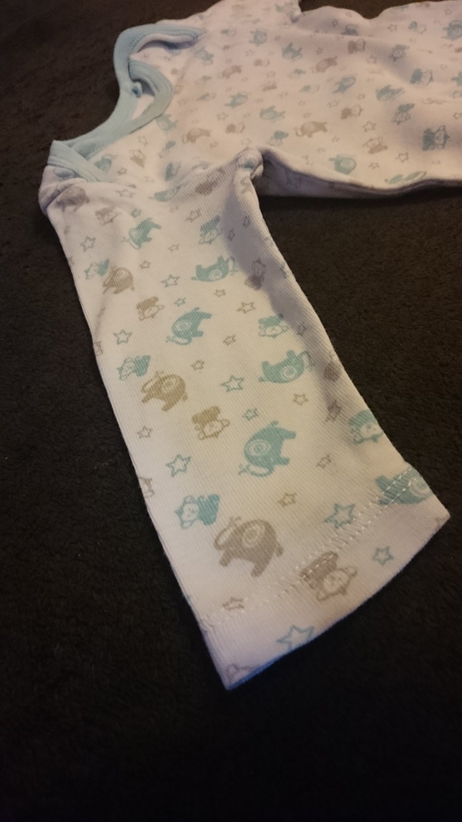 Body s dlhým rukávom, svetlomodré, značka LUPILU. Používané, jemné fliačiky viď foto. Veľkosť 62/68. Cena 0,80 eur.