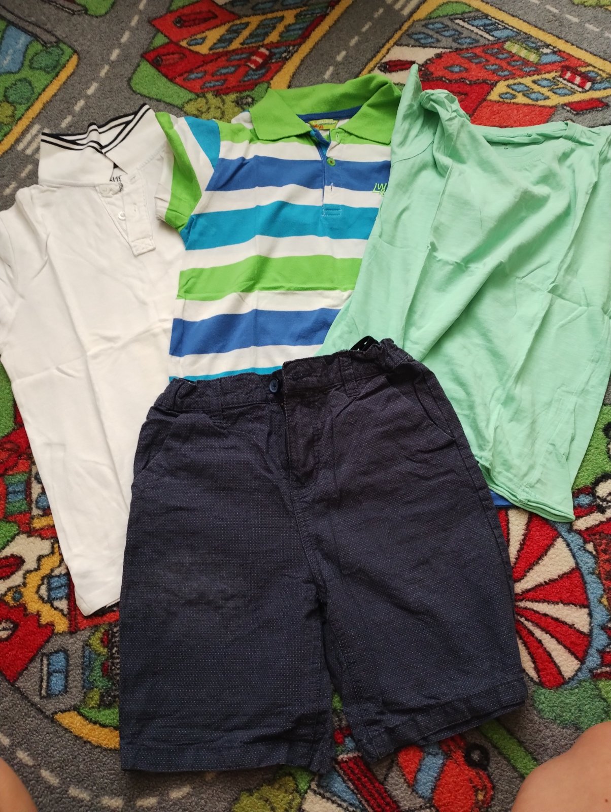Balík oblečenia veľkosti 134/140 1x tepláky Ninjago 1x kraťasy 3x tričko krátky rukáv Zadarmo priložím červené tenké lahunké kraťasy s malou dierkou na boku. Na tričku Tommy Hilfiger jemne ošúcha...